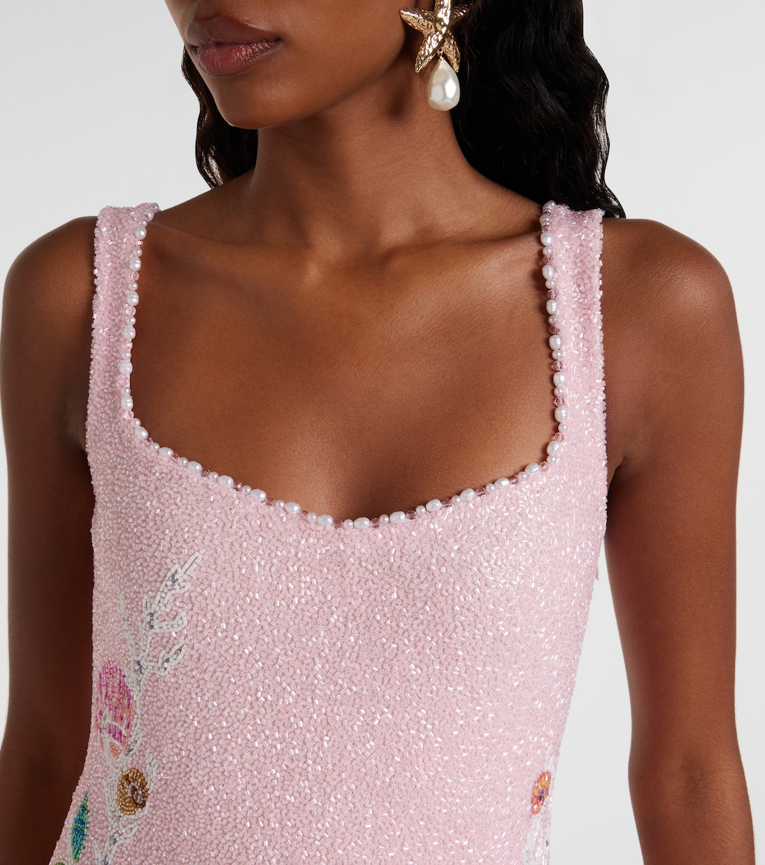 Мини-платье Marina от Clio Peppiatt - гламурный выбор для вашего следующего особого случая. Эта украшенная одежда выделяется своими морскими мотивами, слегка расклешенным силуэтом и едва заметным разрезом спереди.