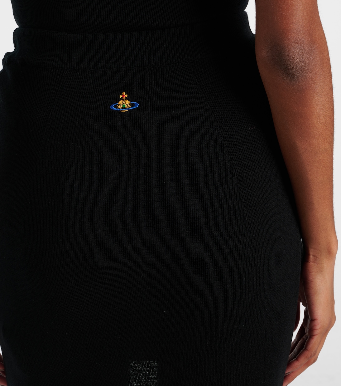 Модели Вивьен Вествуд продолжают воплощать в себе революционную энергию ее покойной основательницы. Мини-юбка Sole, связанная из черного хлопка, отличается высокой посадкой и облегающим силуэтом.