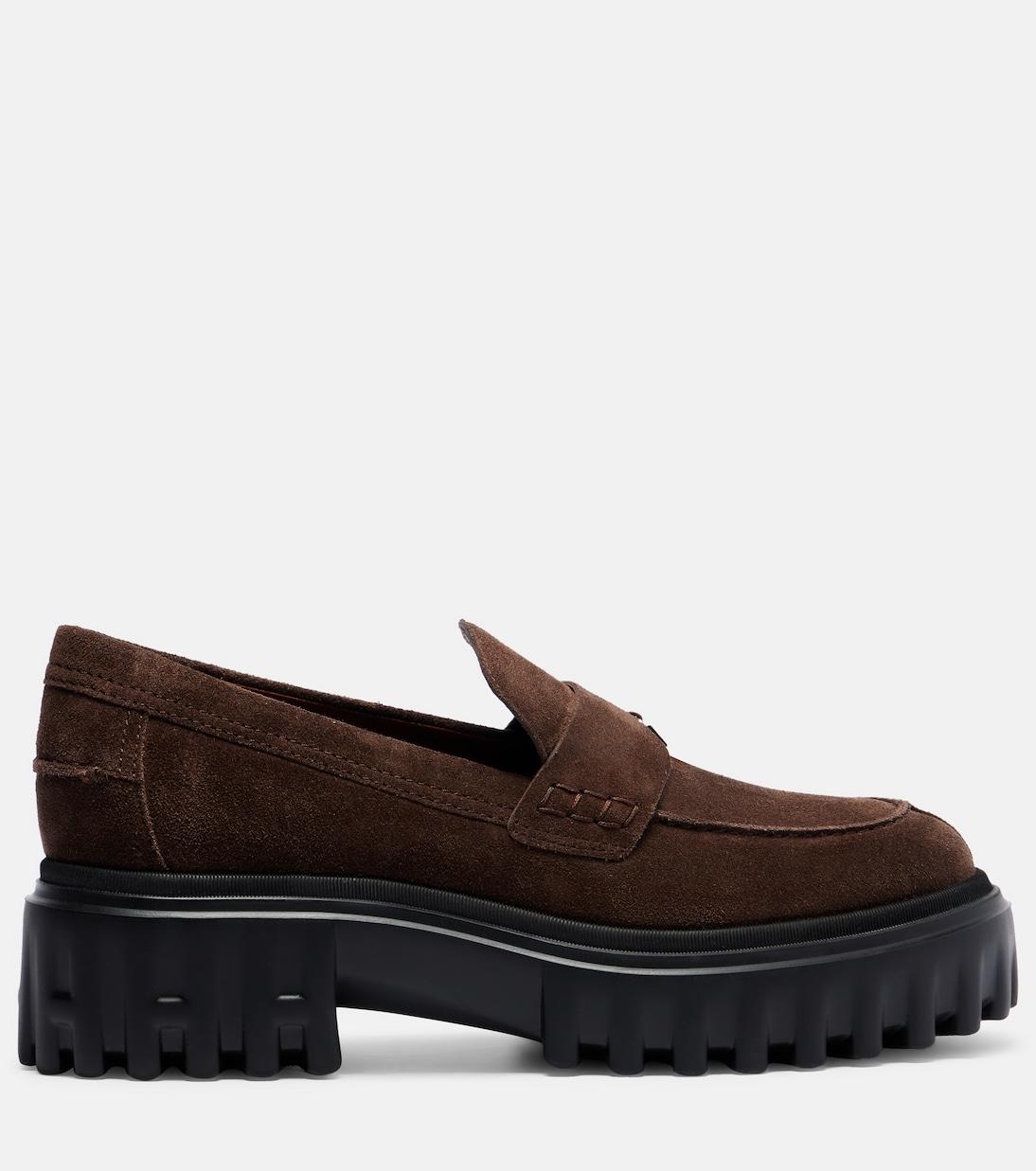 Модель H700 от Hogan гармонично сочетает в себе современные и классические коды. Изготовленные из гладкой нубуковой кожи, они опираются на толстые резиновые подошвы и украшены H-образными подвесками на пенни-ремешках.