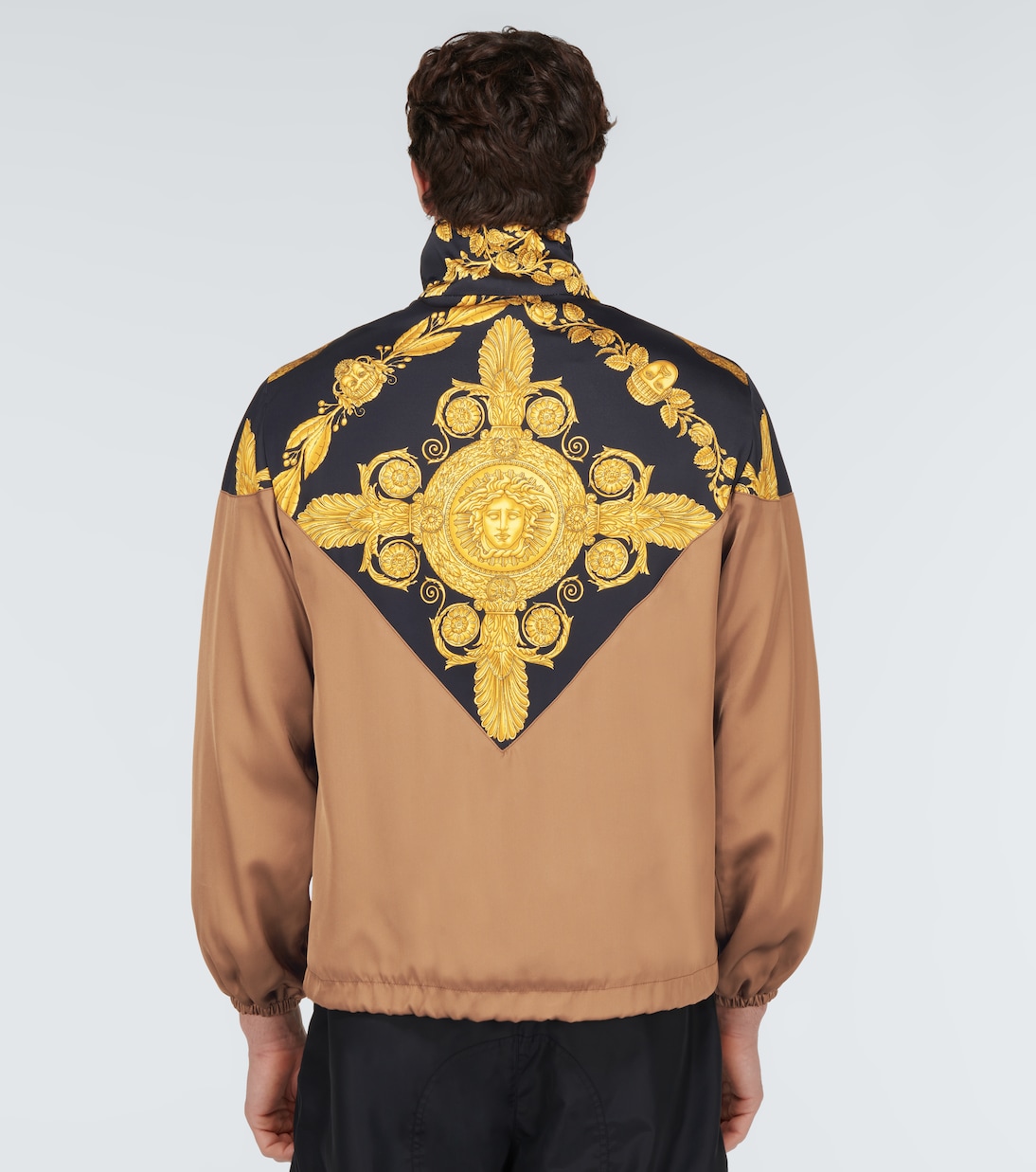 Мотивы Versace, вдохновленные стилем барокко, напоминают замысловатые орнаменты XVII века. Куртка-бомбер Maschera Baroque имеет блестящую атласную отделку, высокий воротник и свободный крой.