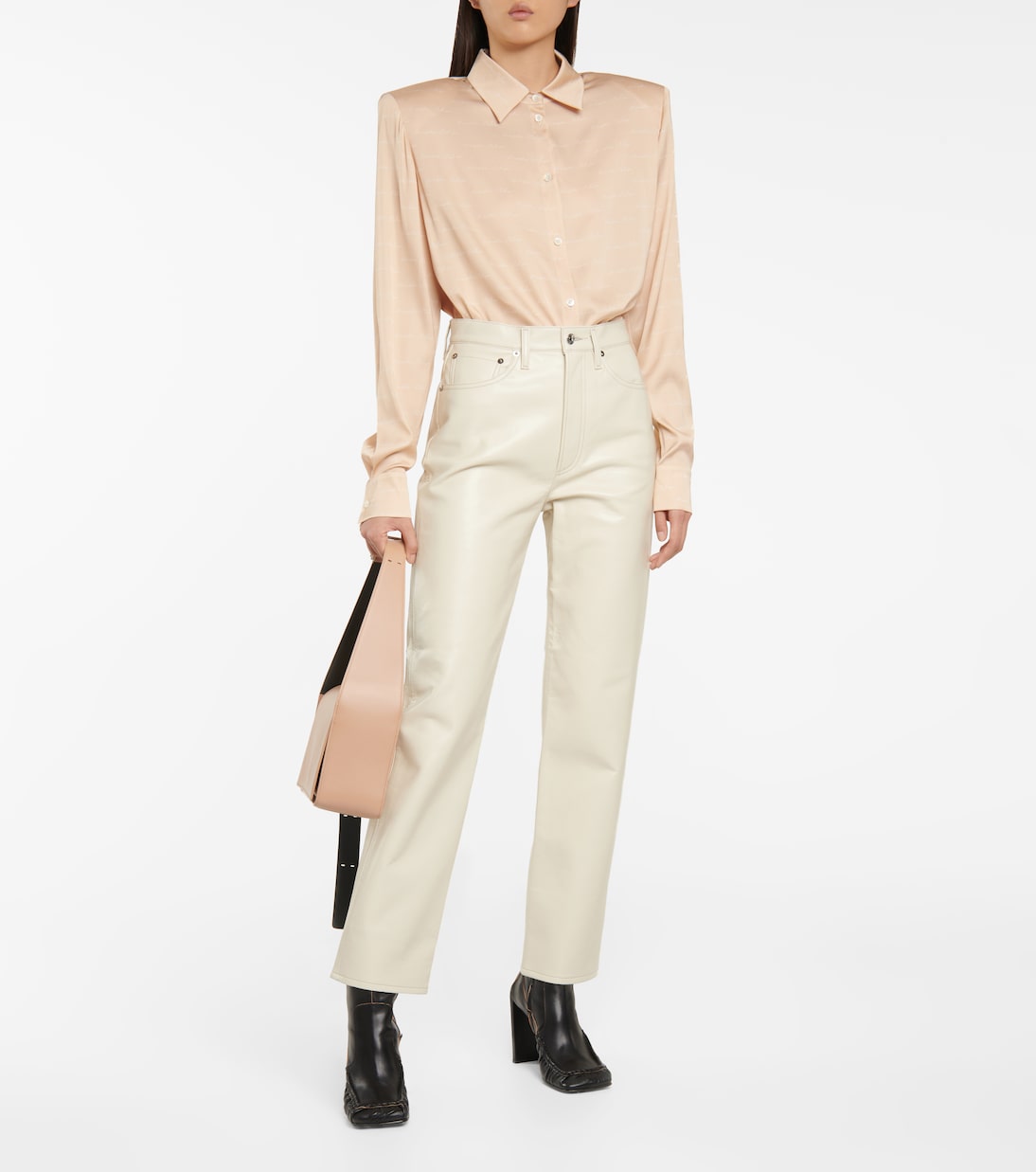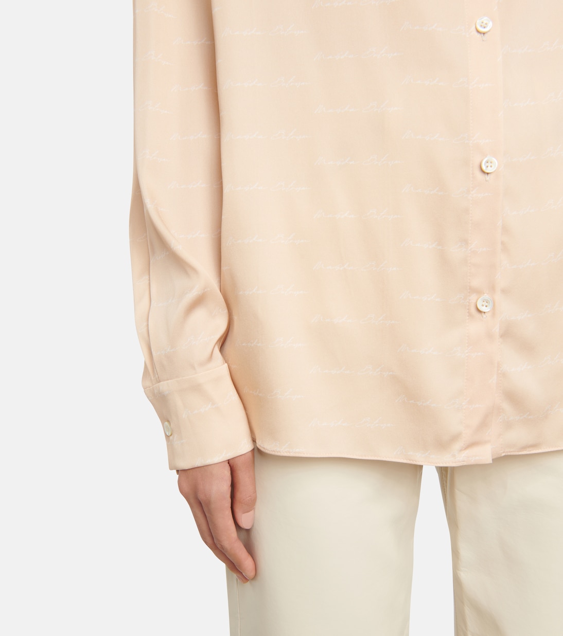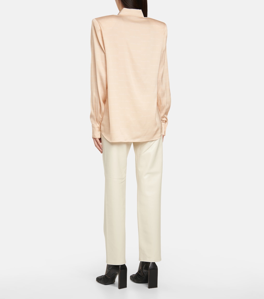 Мы считаем, что изящный курсивный узор логотипа на этой рубашке Магды Бутрым делает ее такой современной. Модель персиково-розового цвета из приятного на ощупь эластичного шелка дополнена съемными подплечниками для создания классического образа в стиле лейбла.