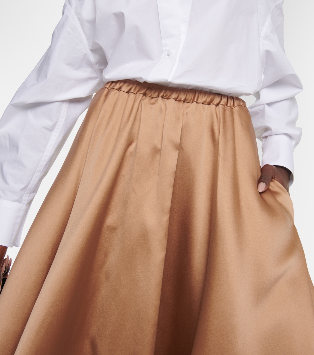 Надев эту юбку миди от Valentino, вы излучаете изысканность. Изготовленное полностью из блестящего атласа дюшес, это плиссированное изделие отличается эффектным свободным силуэтом и эластичным поясом.