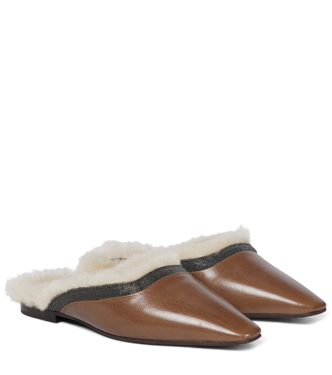 Наденьте эти элегантные туфли с острым носком от Brunello Cucinelli и наслаждайтесь комфортом и элегантностью в равной степени. Изготовлены из мягкой кожи наппа, отделаны и подбиты амортизирующей овчиной и украшены фирменной цепочкой Мониль.
