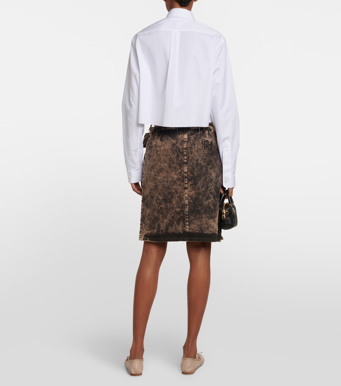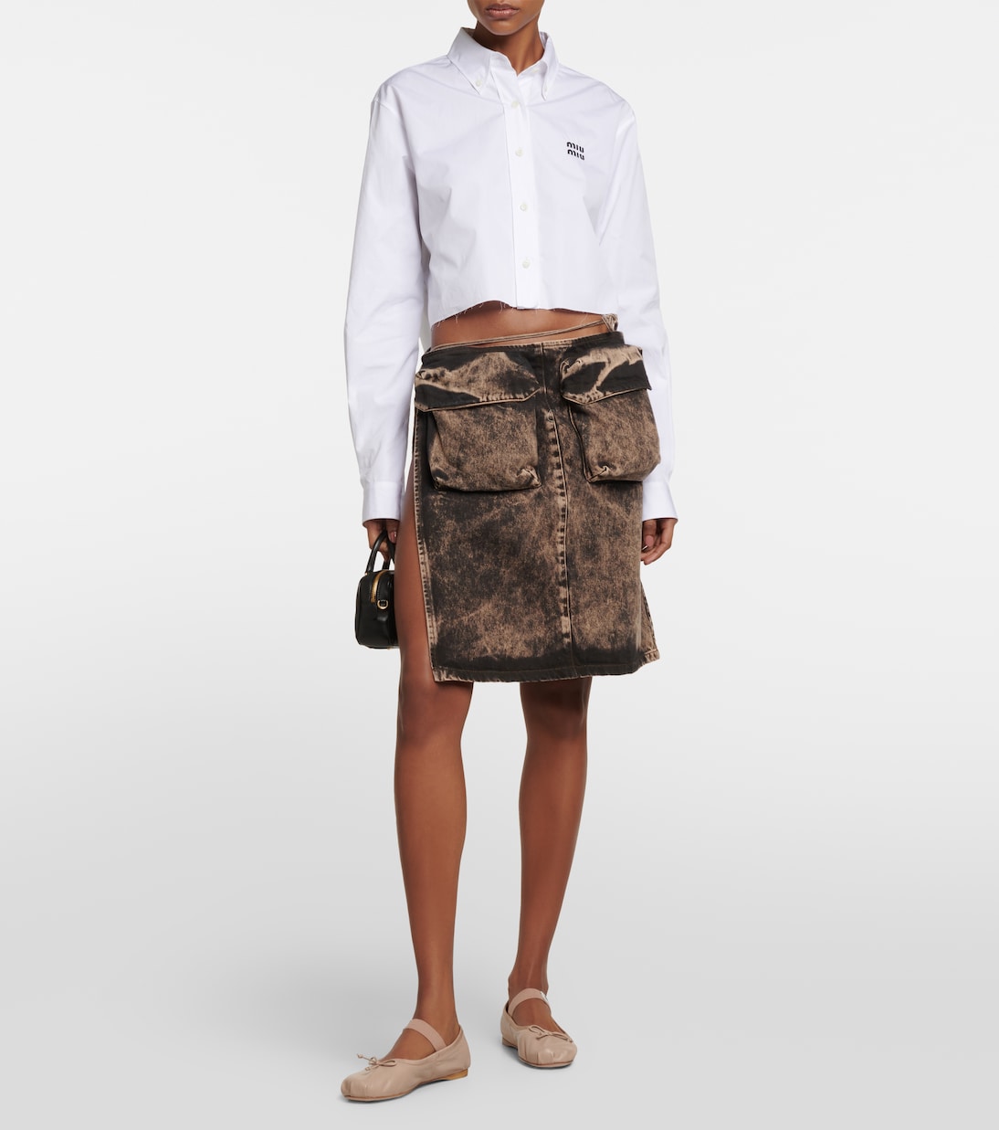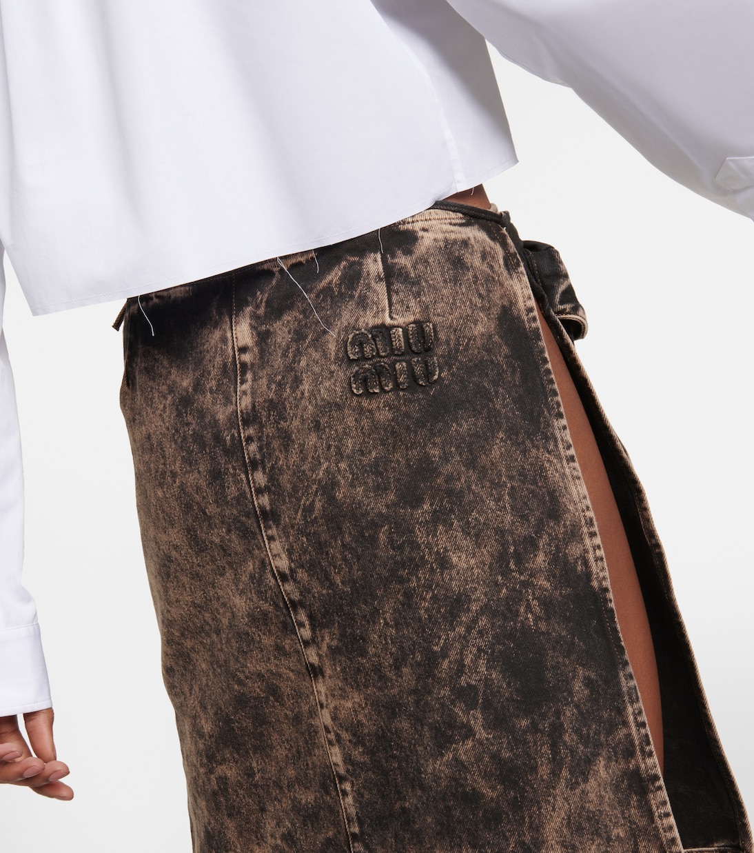 Наденьте эту юбку миди, чтобы продемонстрировать изысканный подход Miu Miu к моде. Изготовлен из плотного стираного денима, имеет заниженную талию, большие накладные карманы и вышитый логотип сзади.