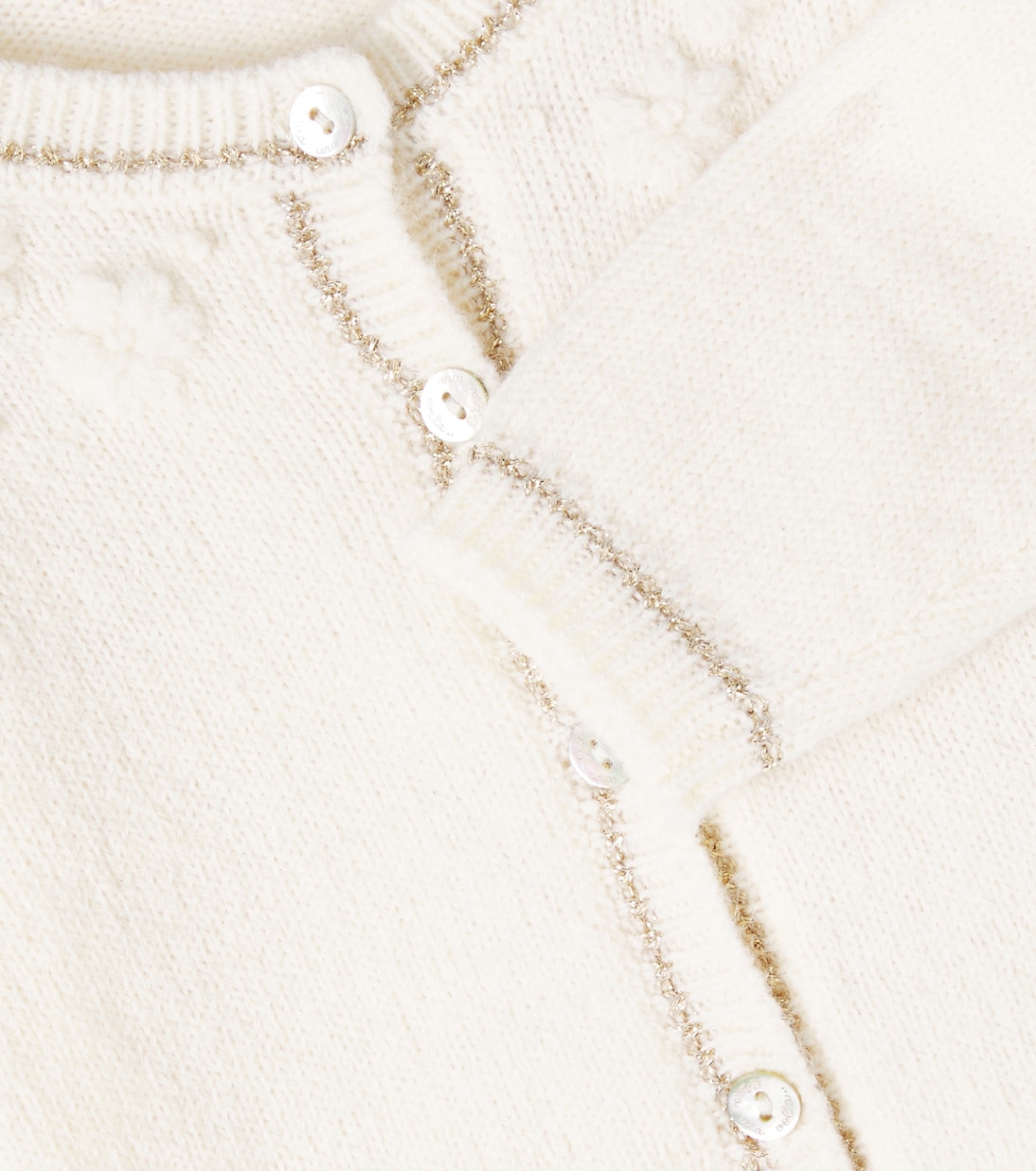 Найдите классические вещи, которые будут цениться сейчас и всегда, в детской коллекции C'era Una Volta. Кардиган Gabriella, выполненный с добавлением шерсти, дополнен очаровательными цветочными мотивами и отделкой из ламе, создающей ослепительный эффект.