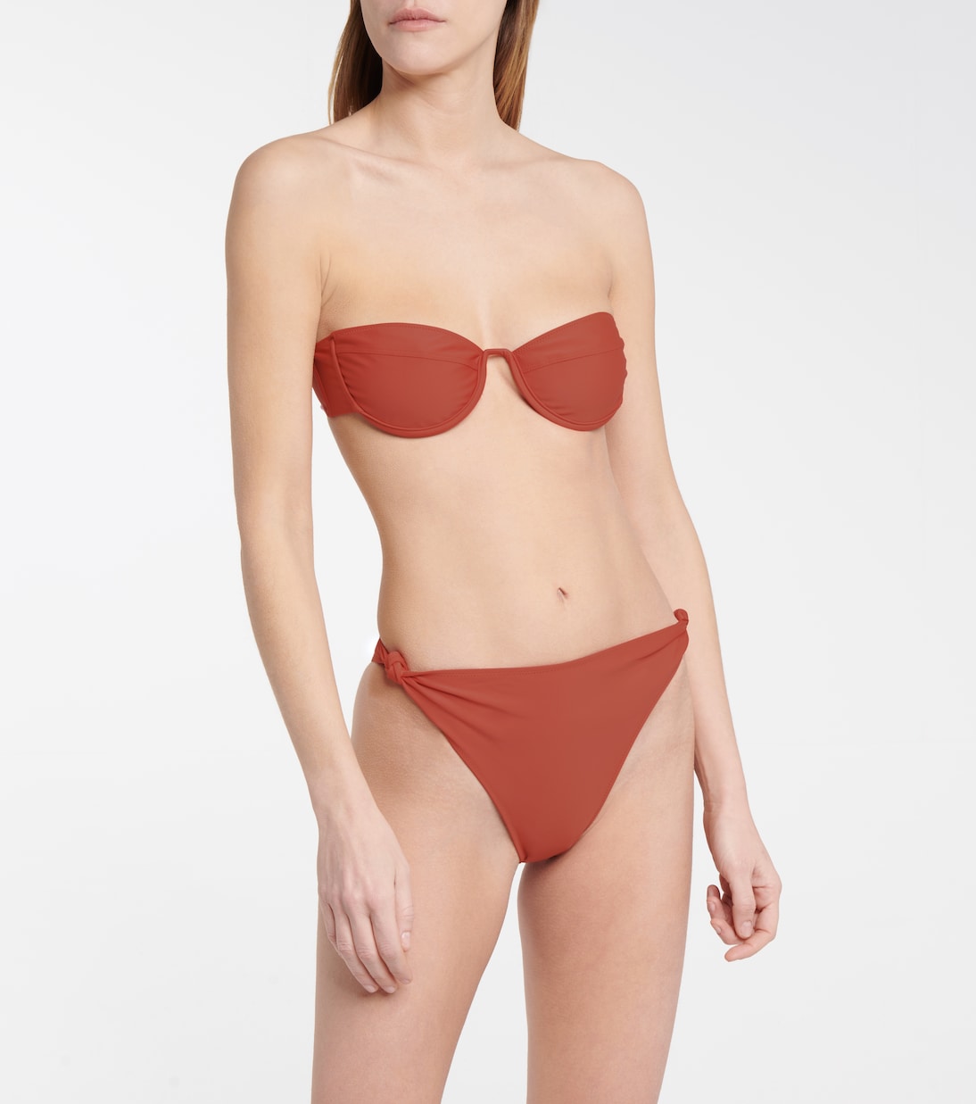 Насыщенно-красные плавки-бикини Sana от Tropic of C созданы с расчетом на максимальный эффект. Они изготовлены из переработанного эластичного плавающего трикотажа и имеют высокую посадку с узелками на бедрах. Носите их с подходящим топом-бандо Mariel или любым другим чувственным комплектом этого бренда. Обратите внимание, что этот фасон обеспечивает минимальную защиту.