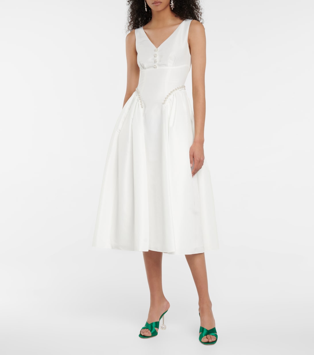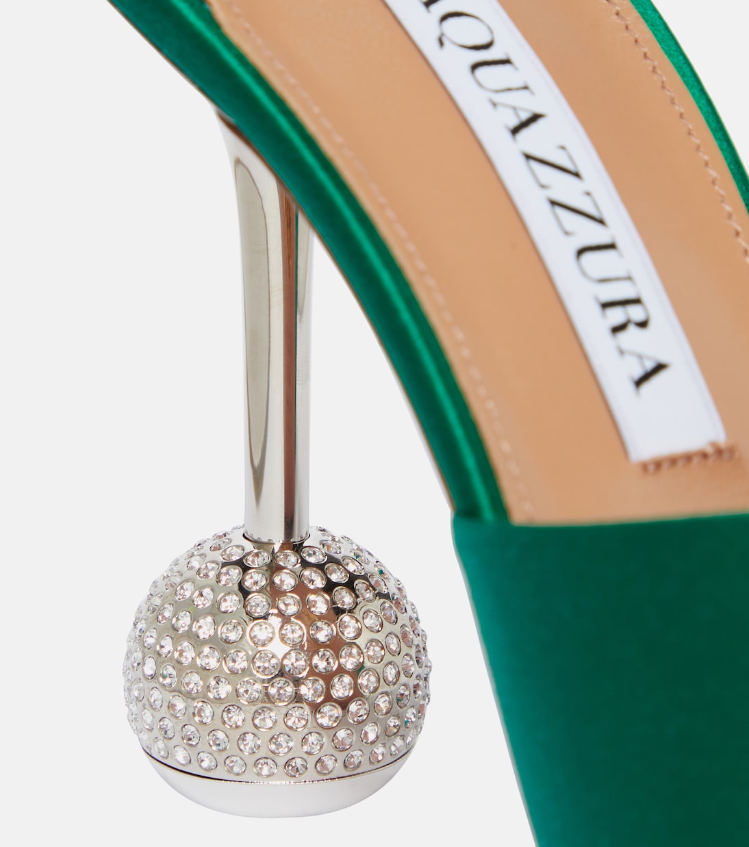 Начните праздничный образ с нуля с босоножек Yes Darling от Aquazzura. Эта пара из блестящего изумрудно-зеленого атласа выделяется декорированными сферическими основаниями на каблуках.