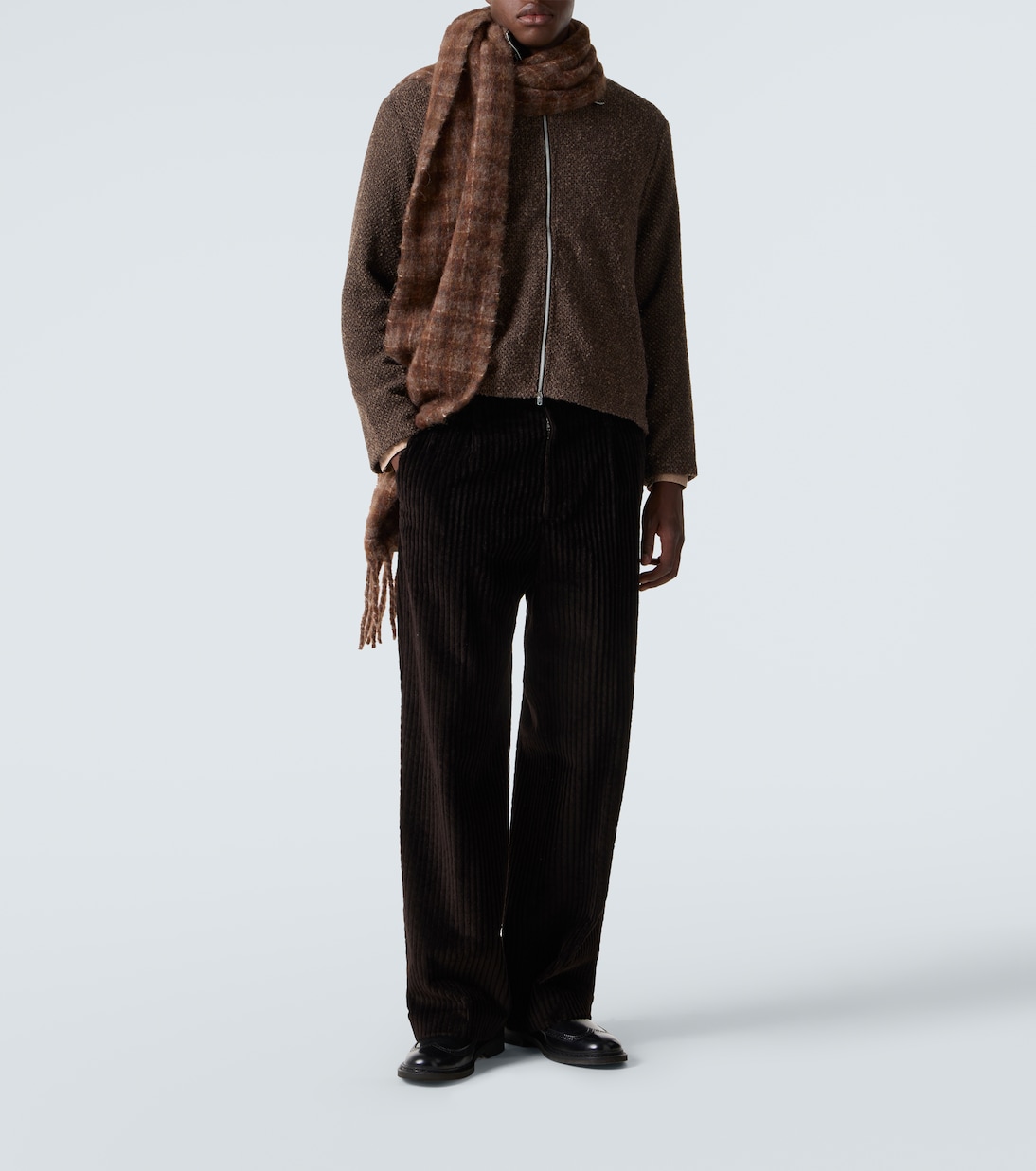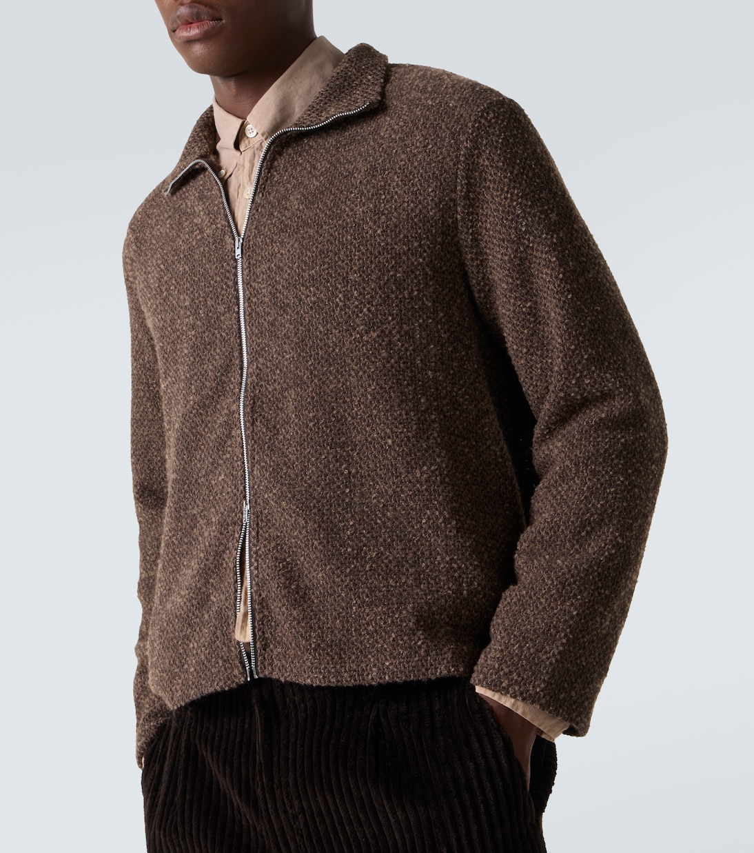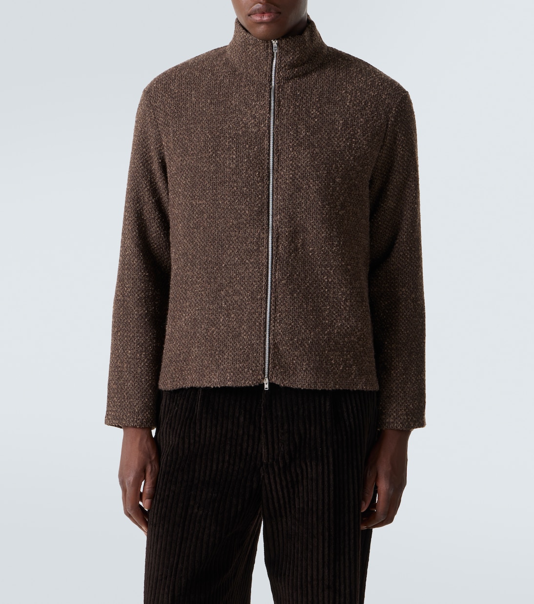 Наше наследие приобрело культовый статус благодаря скандинавскому стилю, неподвластным времени силуэтам и изготовленным на заказ тканям. Куртка Shrunken, связанная из двухцветной пряжи с меланжевым эффектом, застегивается на молнию спереди и имеет воронкообразный вырез.
