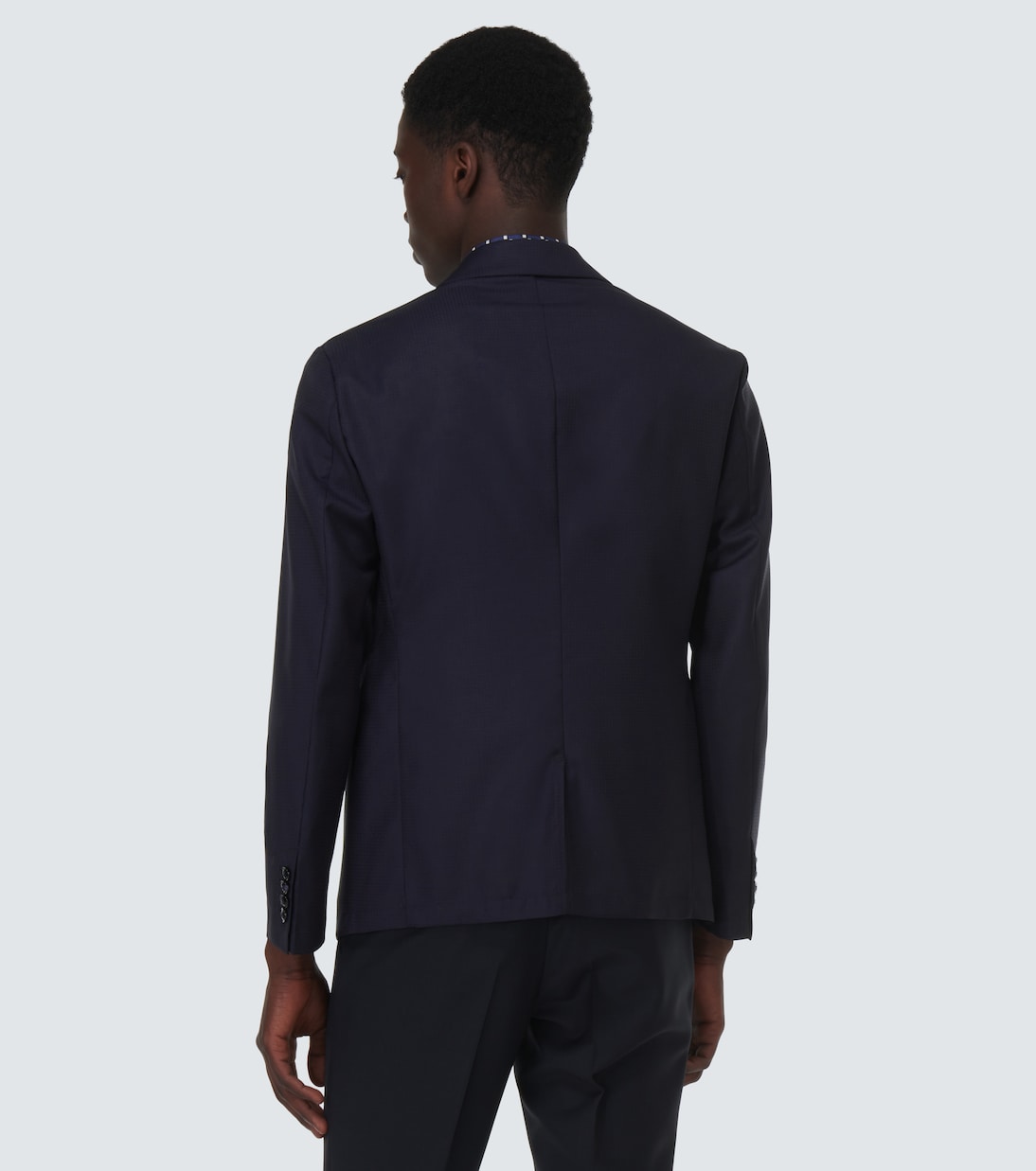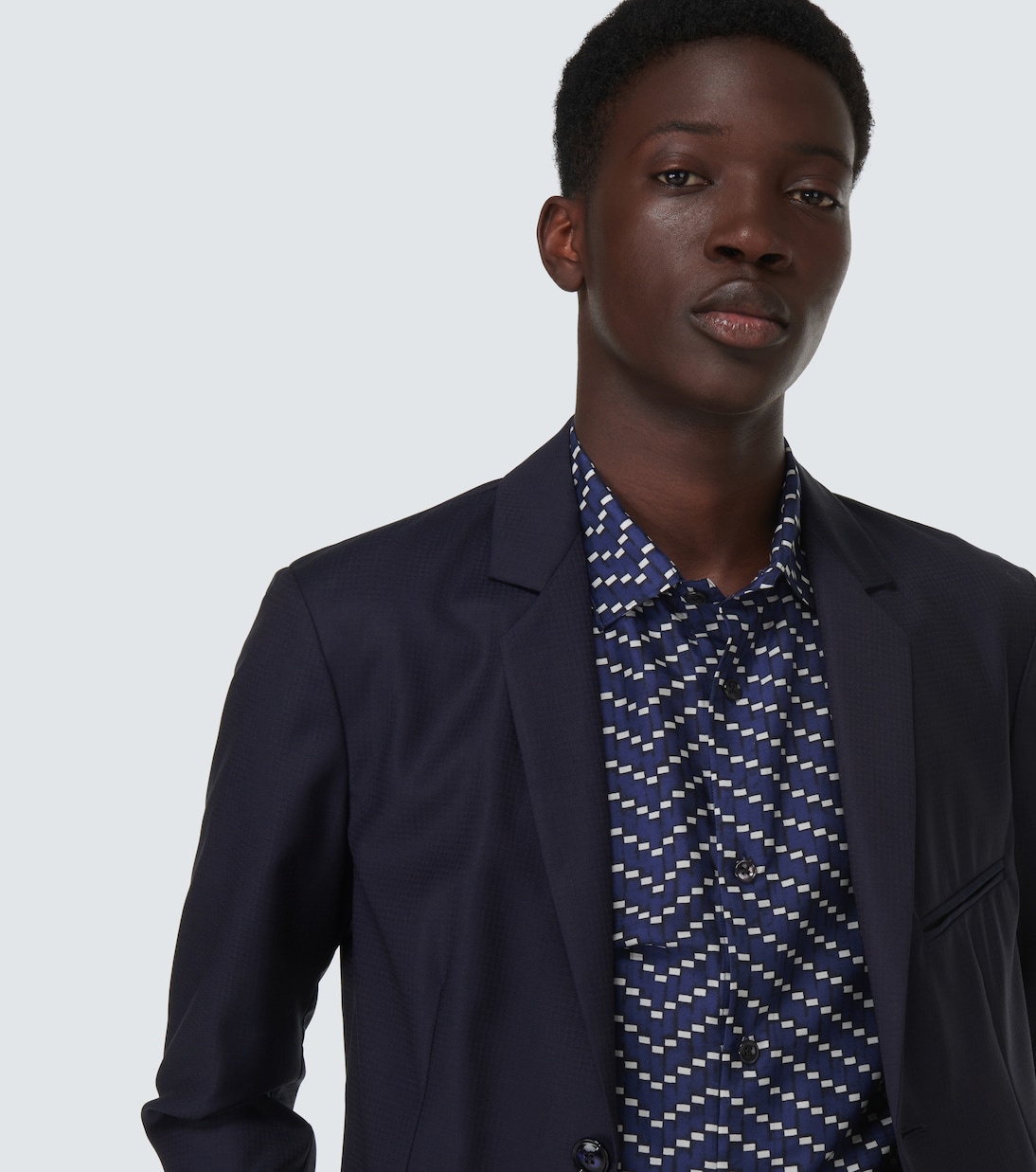 Ни одна коллекция строгого стиля не обходится без модели от непреходящего инновационного итальянского бренда Giorgio Armani. Этот однобортный пиджак выполнен из натуральной шерсти с узором гусиная лапка в тон.