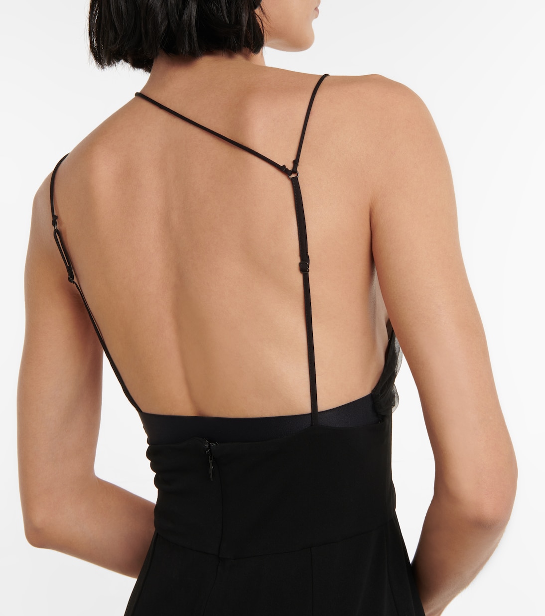 Нэнси Доджака создает готовую одежду, которая одновременно авангардна и удобна для ношения. Это мини-платье сшито в Италии из сетки на основе шелка, которая облегает тело и позволяет увидеть открытые участки кожи.