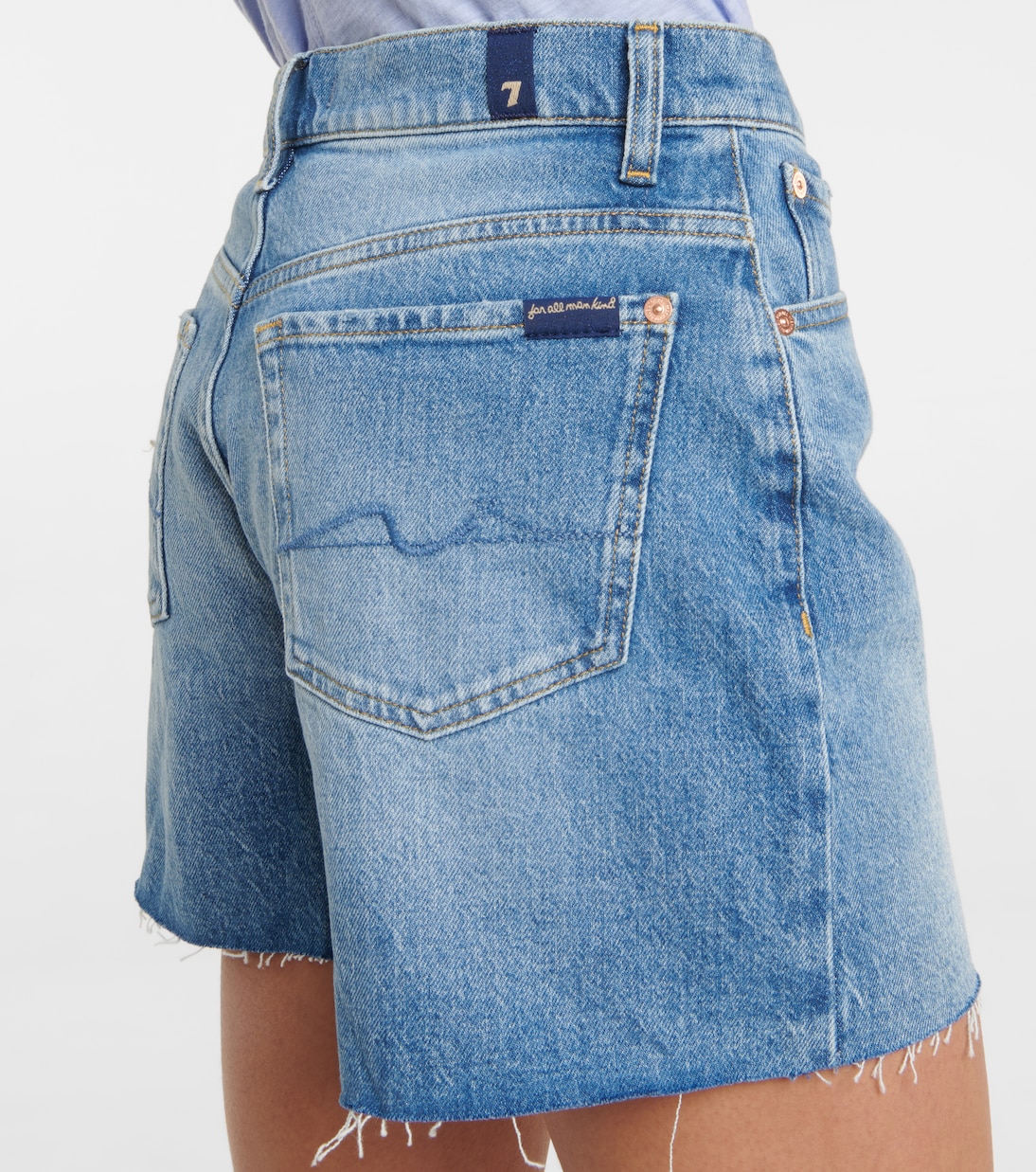 Облегчите себе поход на рынок в выходные с шортами Billie от 7 For All Mankind. Изготовлены из эластичного синего денима, имеют среднюю посадку на талии и необработанные края, которые завершают образ на стильной ноте.