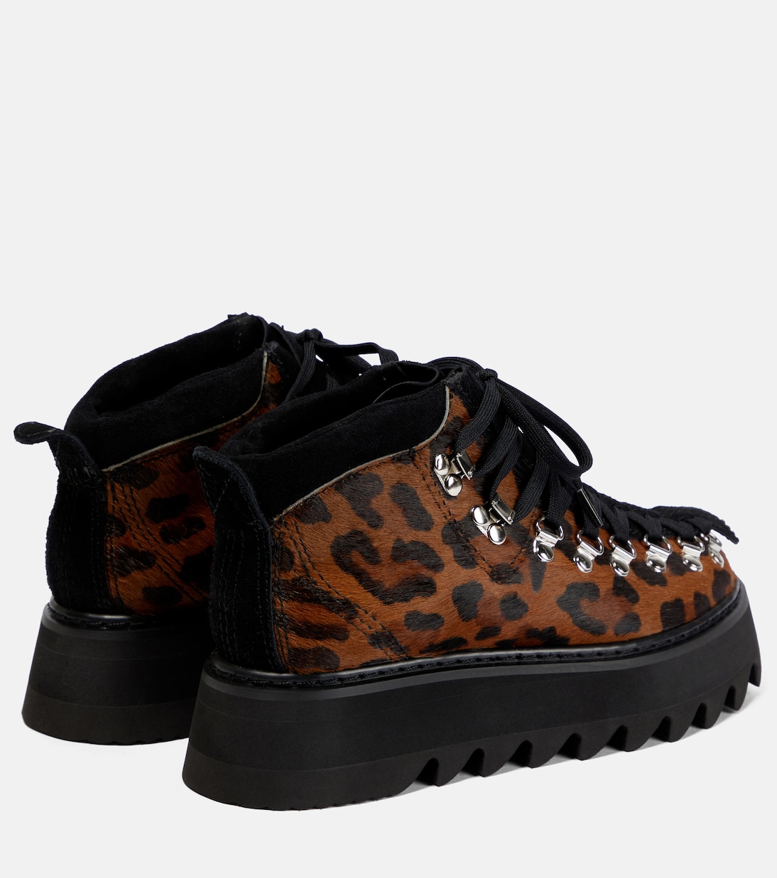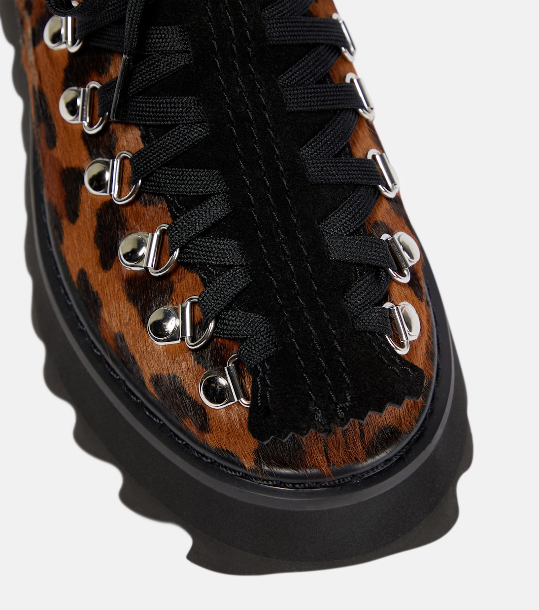 Обновите свою коллекцию зимней обуви такими потрясающими моделями, как эти ботильоны от Junya Watanabe. Модель на шнуровке выполнена из телячьей шерсти с леопардовым принтом и установлена на толстую резиновую подошву.