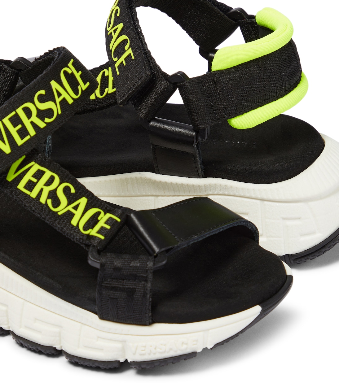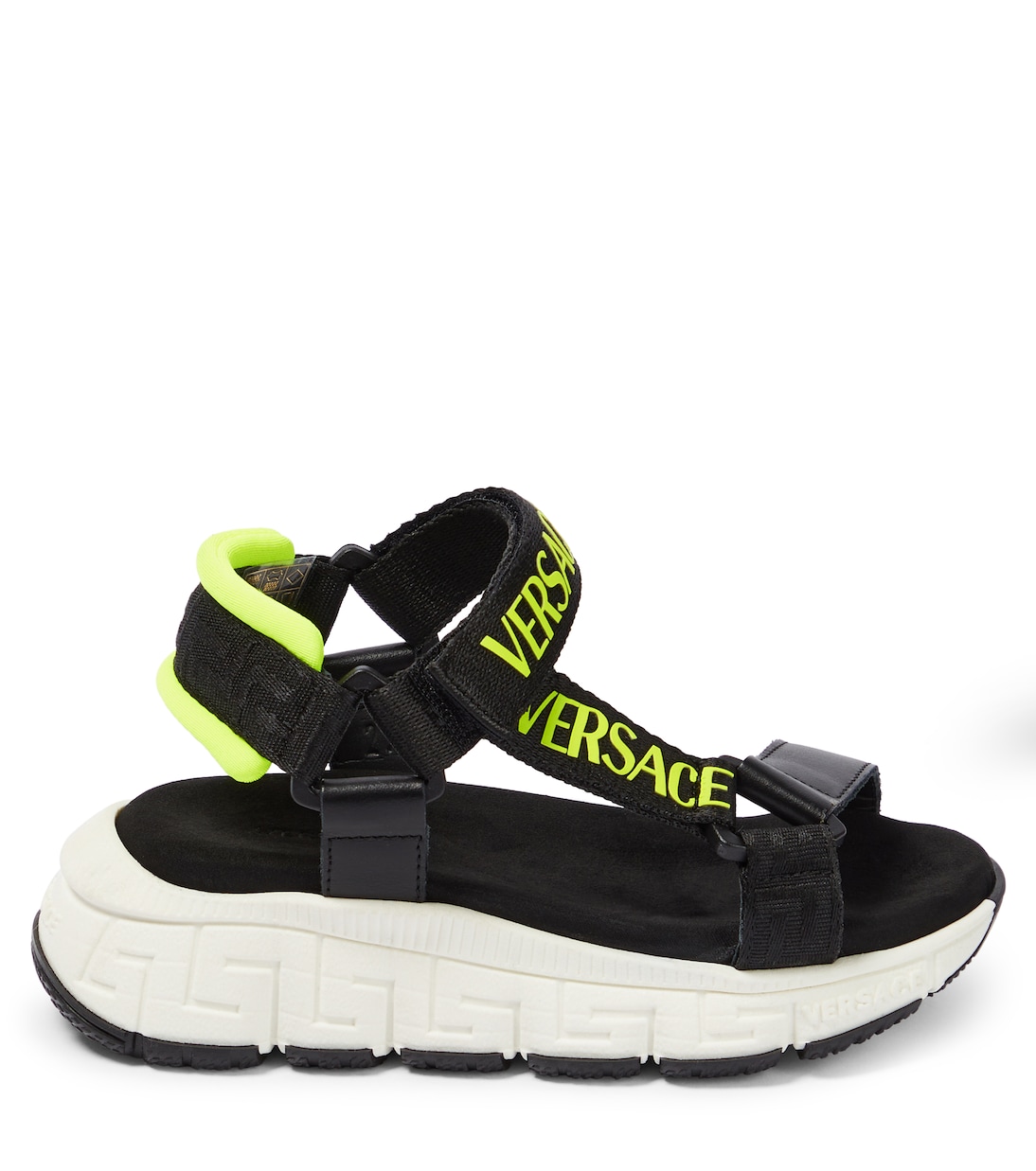 Обратитесь к Versace Kids за стильными моделями миниатюрных размеров, такими как эти сандалии. Удобная пара оснащена фирменными ремешками VELCRO для легкого надевания и снимания, а также подошвой с узором Trigreca.
