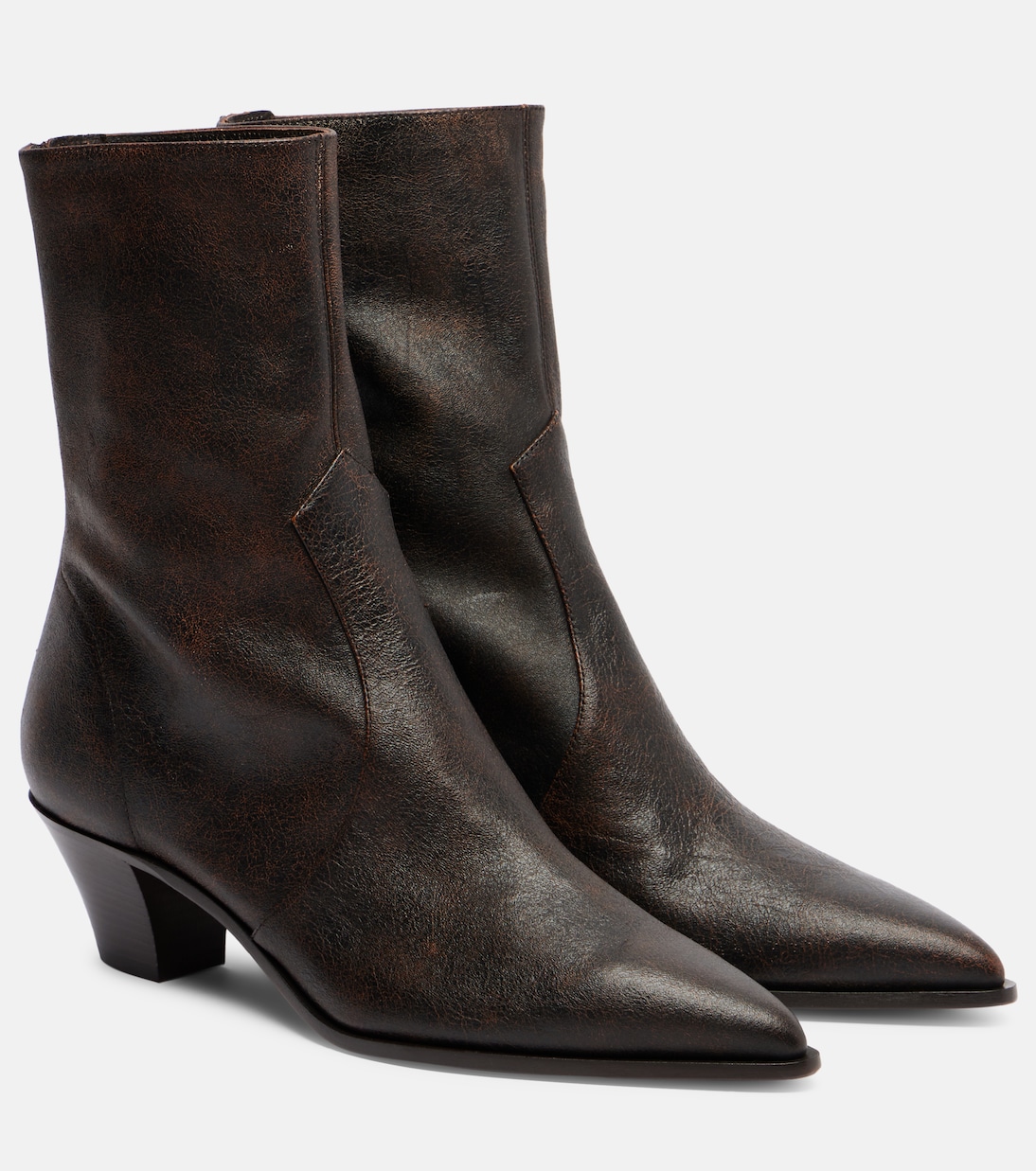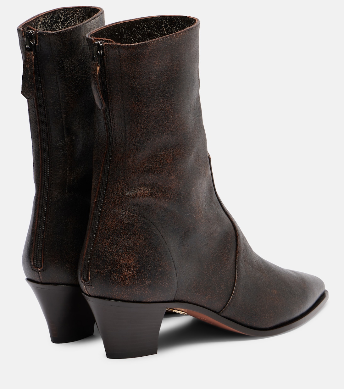 Обувь Aquazzura - это творение любви: одна пара может включать в себя более 30 компонентов, каждый из которых собирается вручную опытными мастерами. Ботильоны Brunswick изготовлены в Италии из коричневой кожи на блочном каблуке высотой 45 мм.