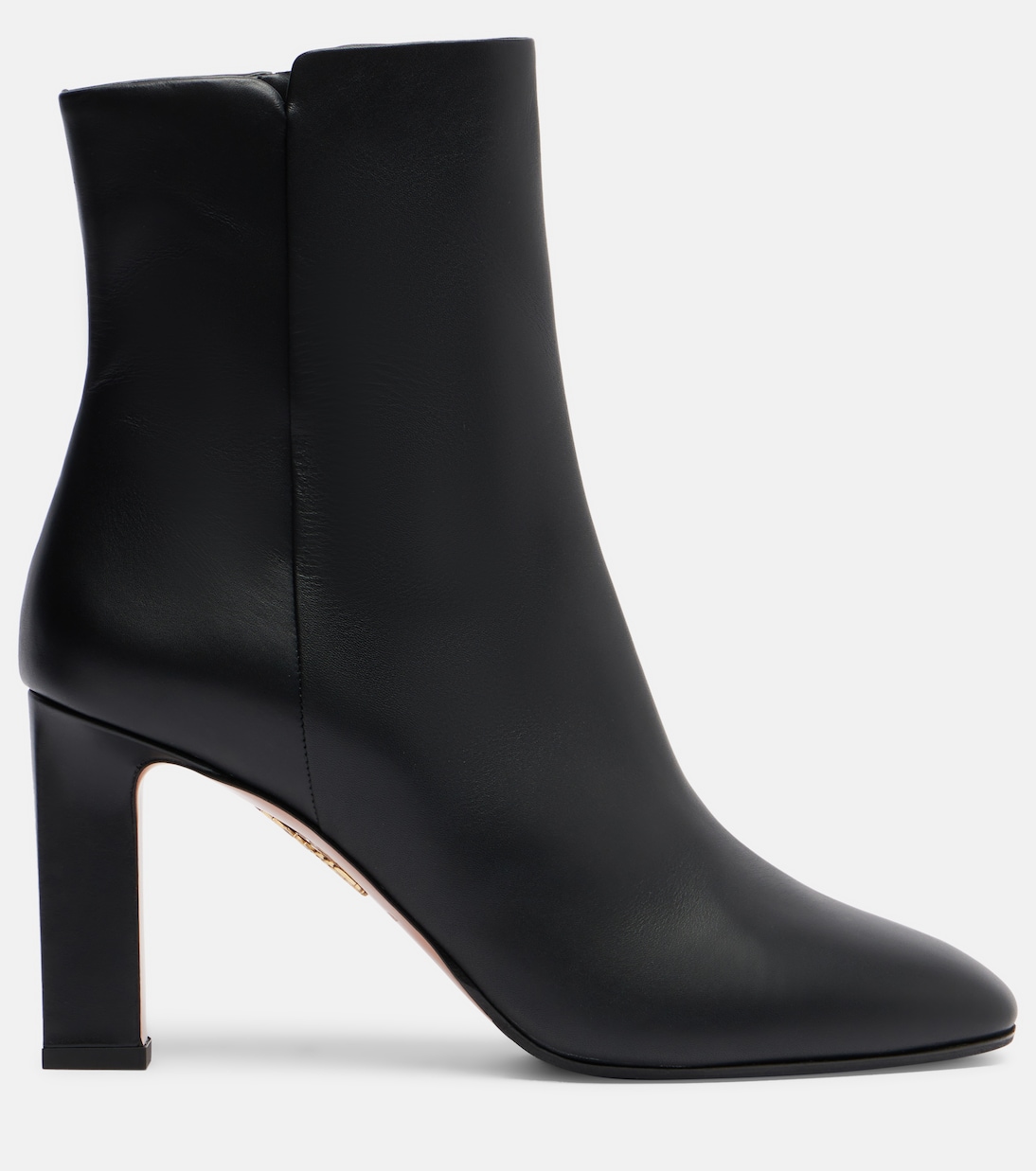 Обувь Aquazzura - это творение любви: одна пара может включать в себя более 30 компонентов, каждый из которых собирается вручную опытными мастерами. Ботильоны Sellier изготовлены в Италии из черной кожи на блочном каблуке высотой 85 мм.