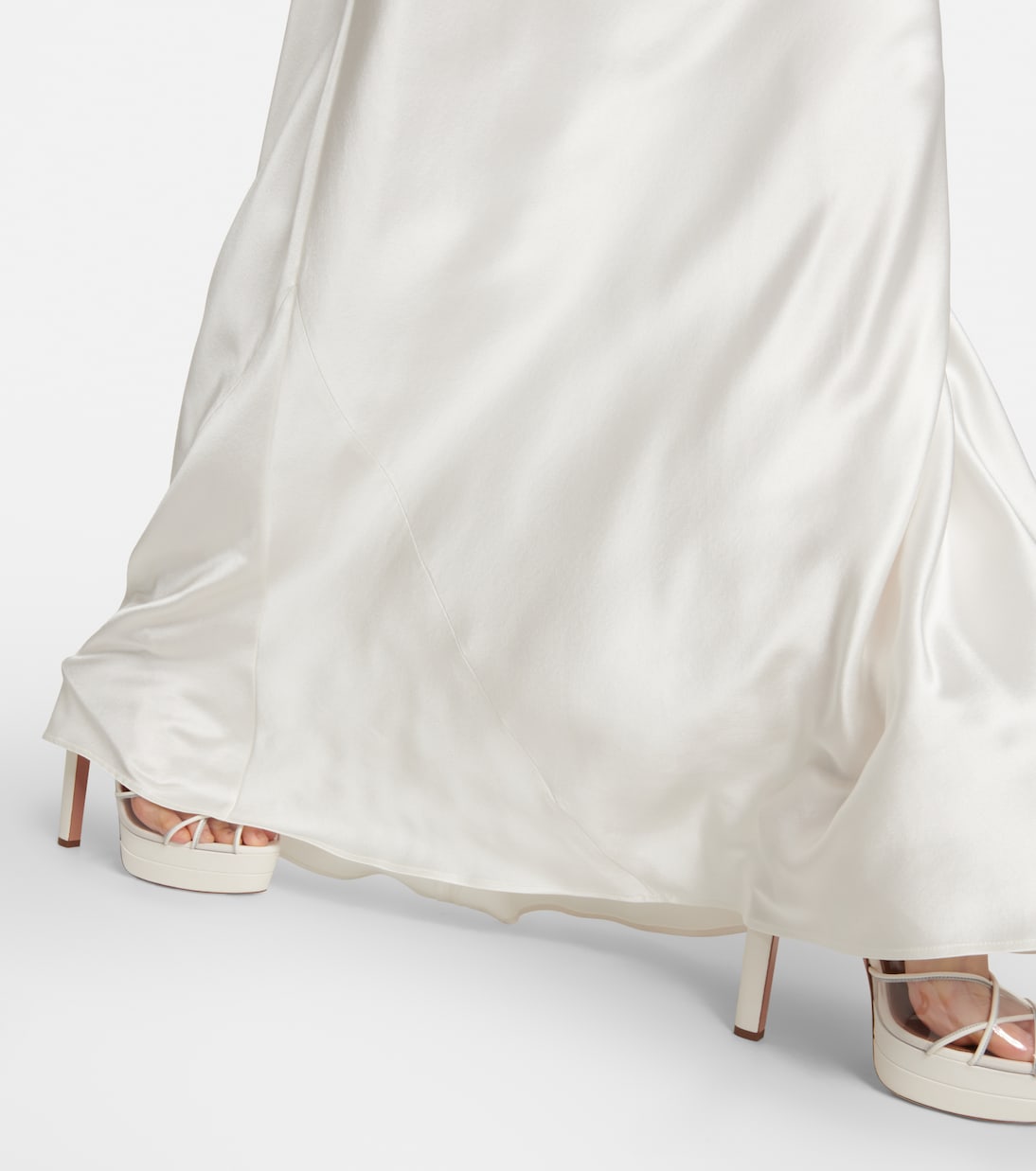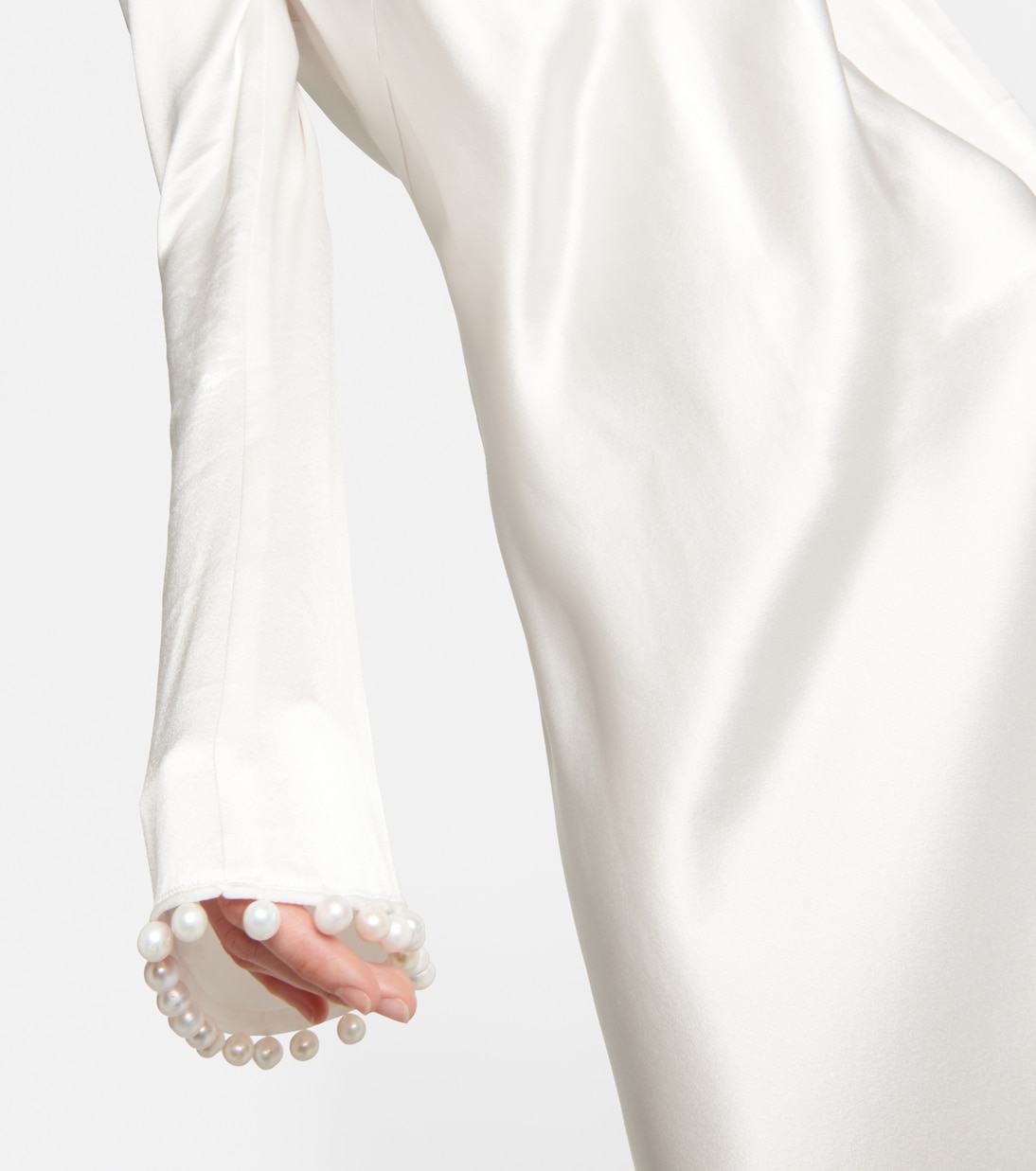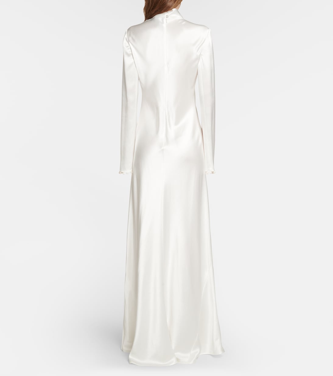 Овладейте искусством элегантного минимализма в свой важный день с платьем Praiano от Galvan. Изготовлено из чистого шелка, имеет прямой крой с великолепной струящейся драпировкой и фирменным высоким воротом, а также декоративным искусственным жемчугом на слегка расклешенных манжетах.