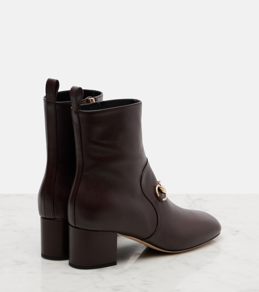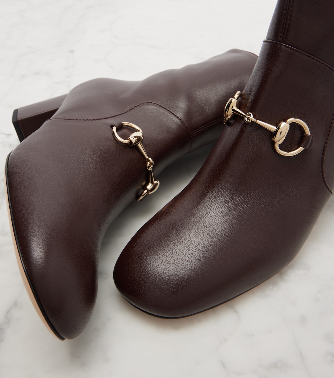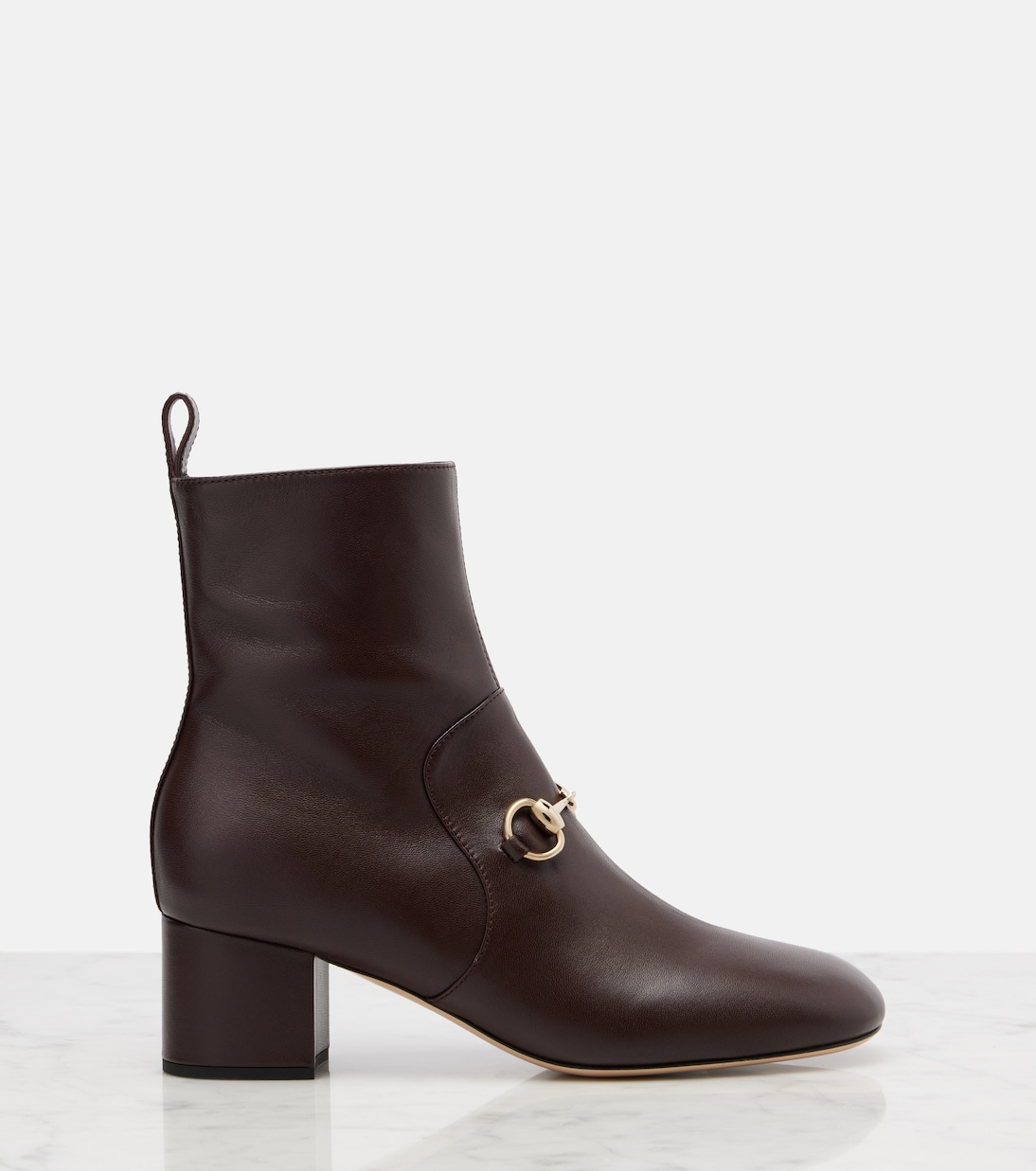 Один из самых ярких символов Gucci, Horsebit, указывает на давнюю любовь дома к конному дизайну. Эта фирменная деталь теперь присутствует на этих ботильонах, дополняя гладкую кожаную конструкцию и характерный круглый носок.
