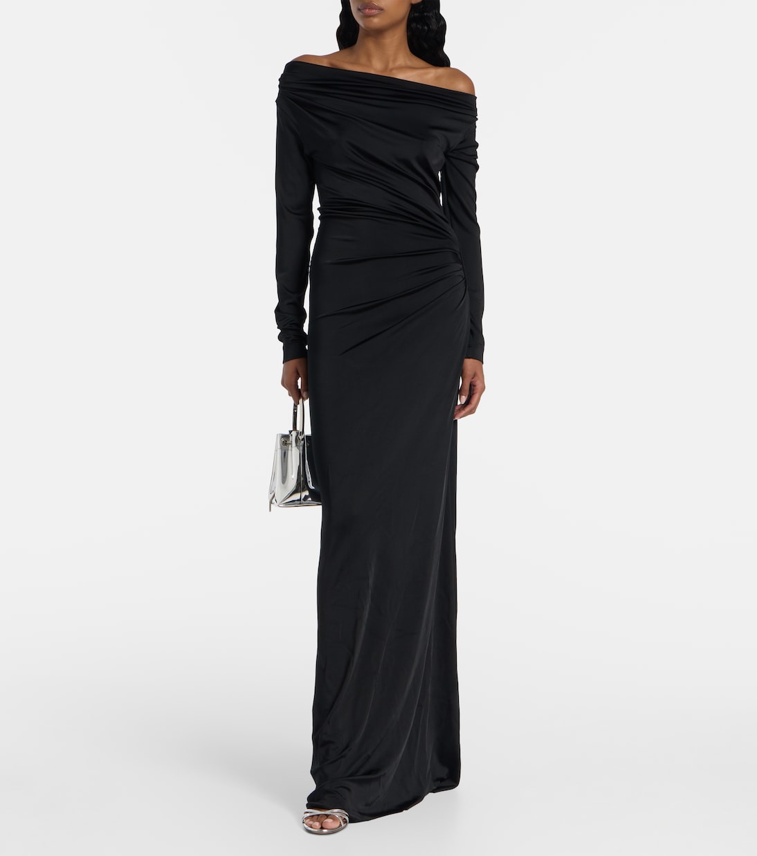 Одноименный бренд Виктории Бекхэм специализируется на непринужденно шикарных стилях, как это платье. Эта модель с длинными рукавами, отличающаяся драпированным силуэтом с открытыми плечами, излучает уверенность и самоуверенность.