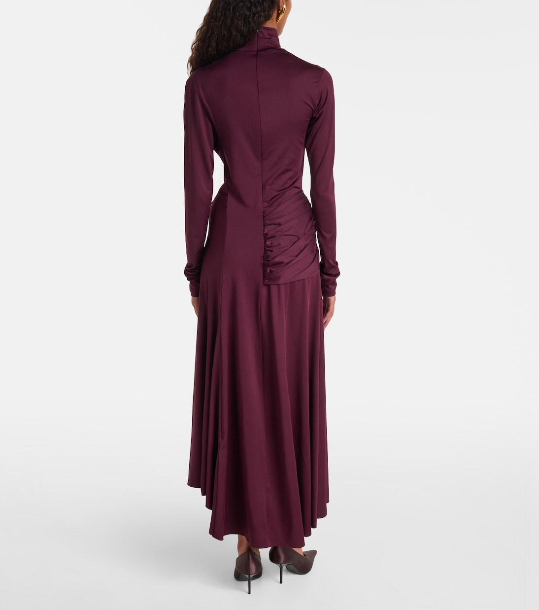 Одноименный лейбл Виктории Бекхэм делает ставку на шикарный, сдержанный стиль. Это платье миди выполнено из трикотажа и имеет вырез под горло, подчеркнутый скрученными деталями.