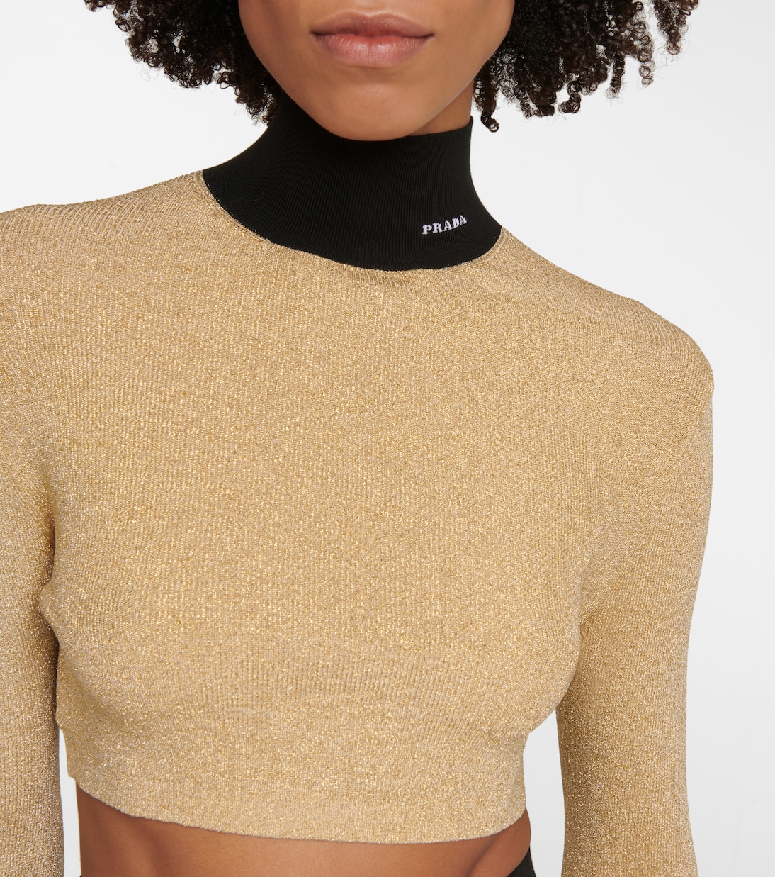Оживите свой образ этим современным гибридным свитером от Prada. Изготовленный из мерцающей пряжи ламе с использованием ребристого трикотажа, укороченный силуэт дополнен контрастным воротником-стойкой, что придает ему нотку спортивной роскоши.