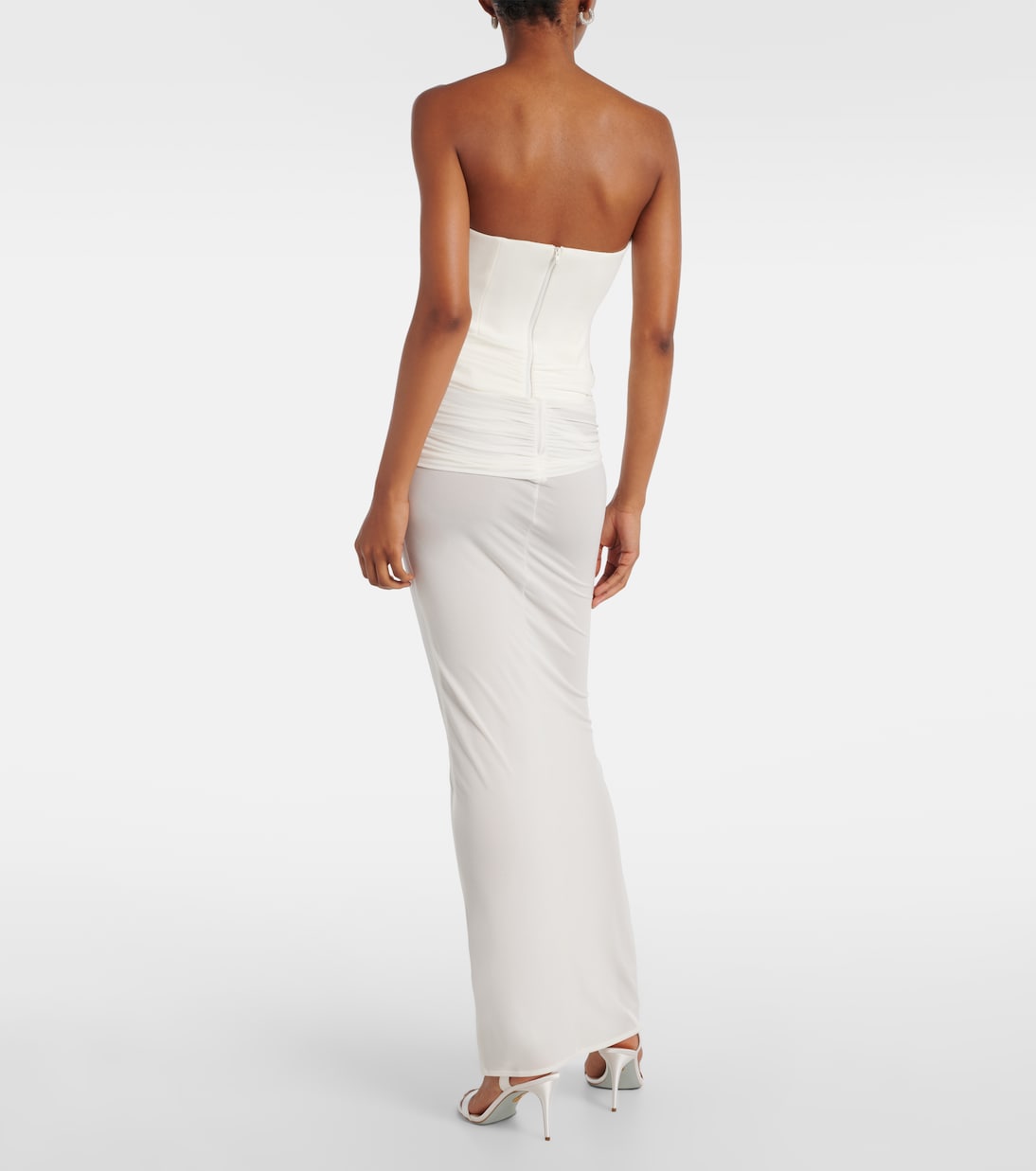 Оказывайтесь в центре внимания с нарядами от Алекса Перри, которые не раз блистали на красной дорожке. Это платье-корсет из крепового джерси имеет драпировку на бедрах и прямой силуэт.