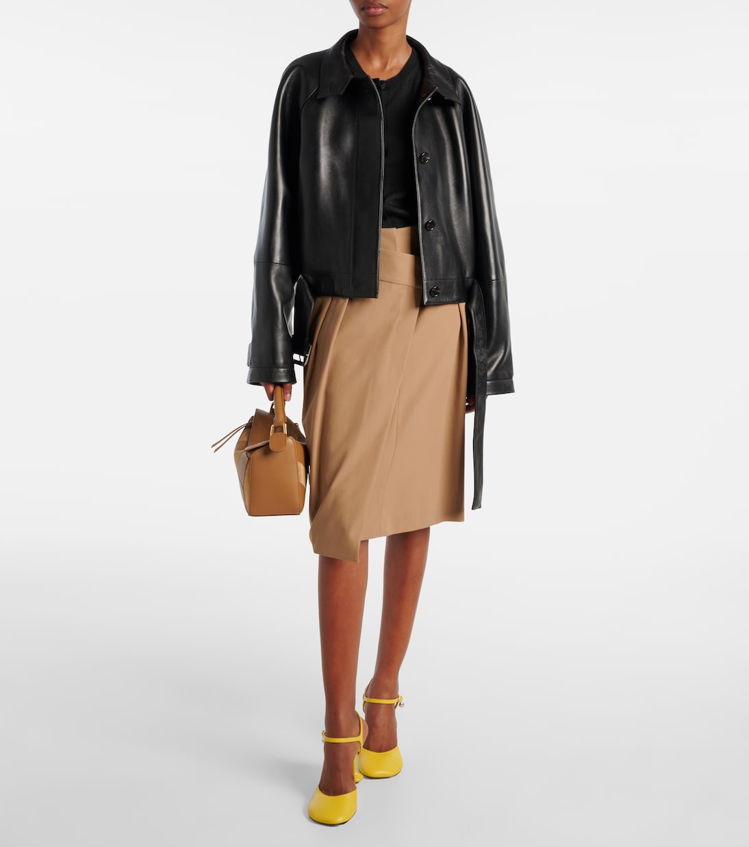 Основанная в 1846 году как кожевенная компания, компания Loewe сохраняет приверженность искусству и ремеслу высочайшего качества. Эта куртка, вдохновленная тренчкотом, искусно выполнена из кожи в укороченный силуэт с застегивающимся высоким воротом и регулируемым ремнем с пряжкой на подоле.