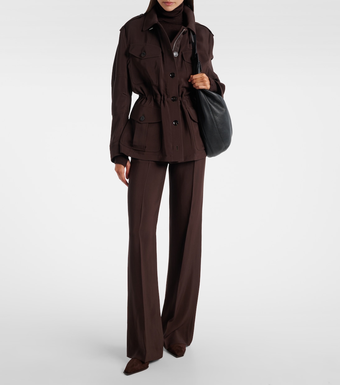 Основывайте свою ротацию обуви на базовых парах, таких как ботильоны Hadley от Jimmy Choo. Изготовленные в Италии из замши, эти классические туфли стоят на танкетке высотой 60 мм и имеют заостренный носок.