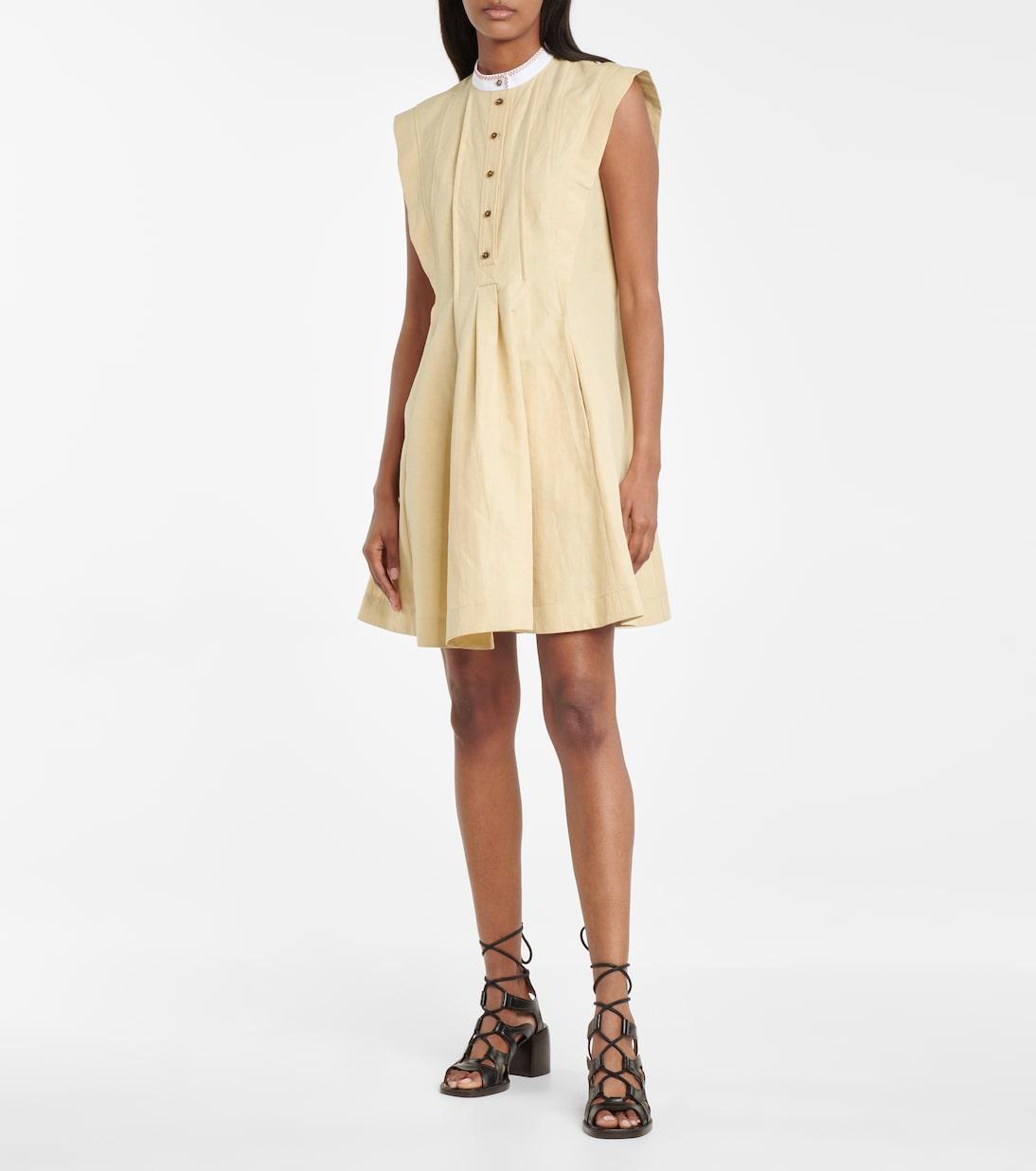 Оставьте в шкафу симпатичное желтое платье-сарафан от Chloé для более солнечных дней. Изготовлено из льна и хлопка с прошитыми складками, имеет рукава-крылышки, расклешенную юбку и вышитые детали.