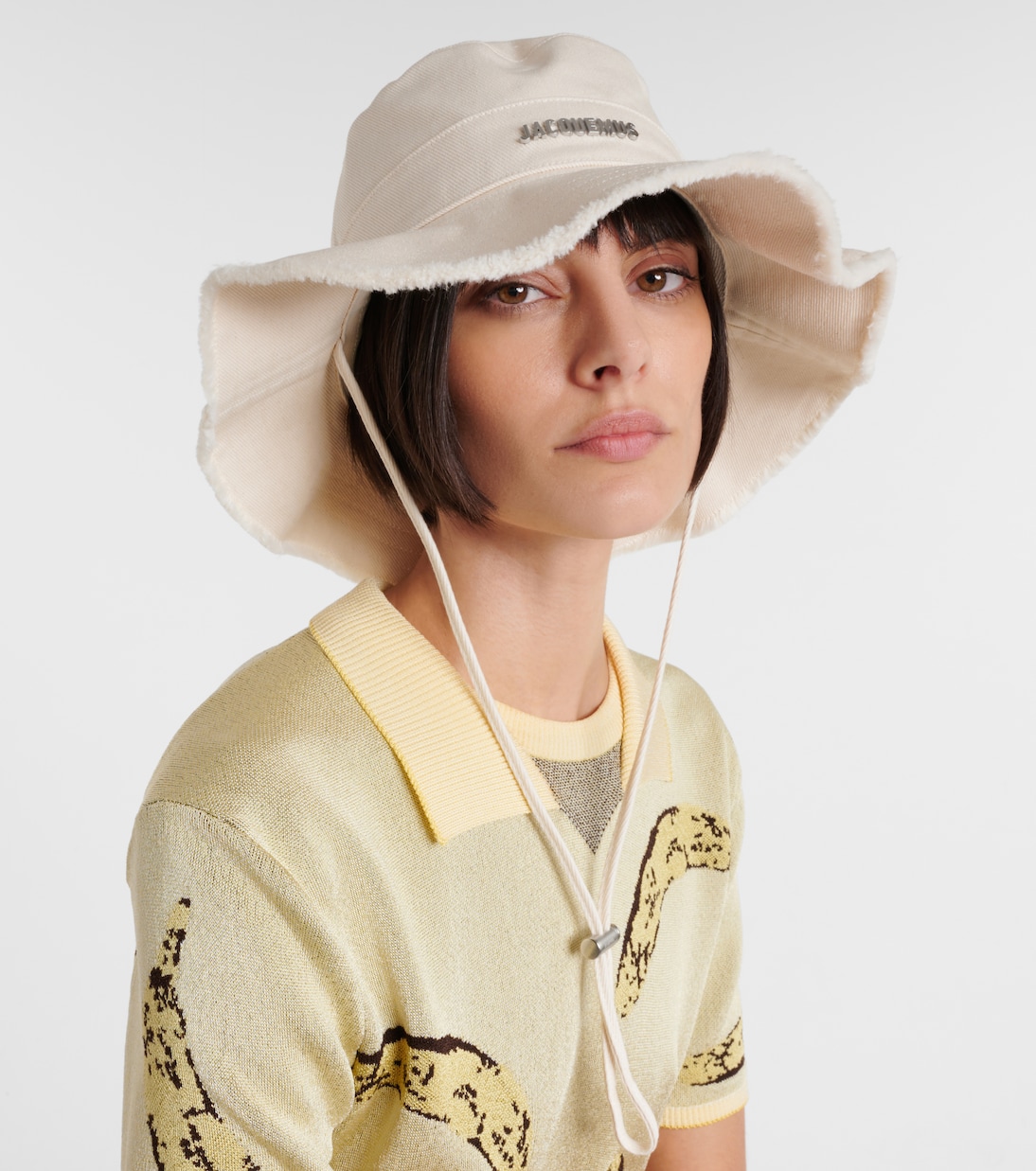 Отправляйтесь навстречу приключениям в панаме Le Bob Artichaut от Jacquemus. Этот аксессуар из хлопка оснащен регулируемым ремешком и украшен серебристой пластинкой с логотипом спереди, которая придает ему особый шарм.
