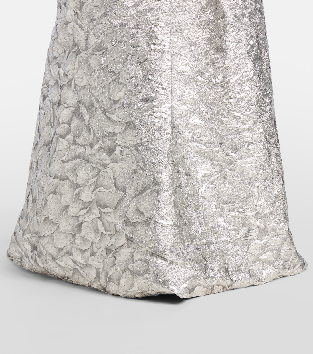 Очаровательные изделия Monique Lhuillier, отличающиеся продуманным мастерством и современной романтикой, идеально подойдут для особых случаев. Это платье без бретелек имеет элегантный облегающий силуэт с расклешенной юбкой и косточками, дополненными цветочным жаккардовым узором по всей поверхности.