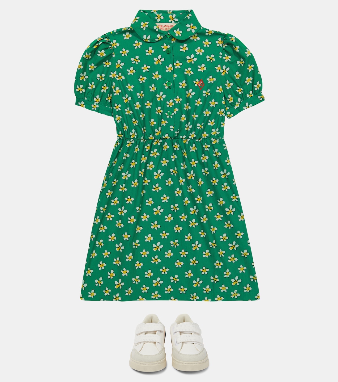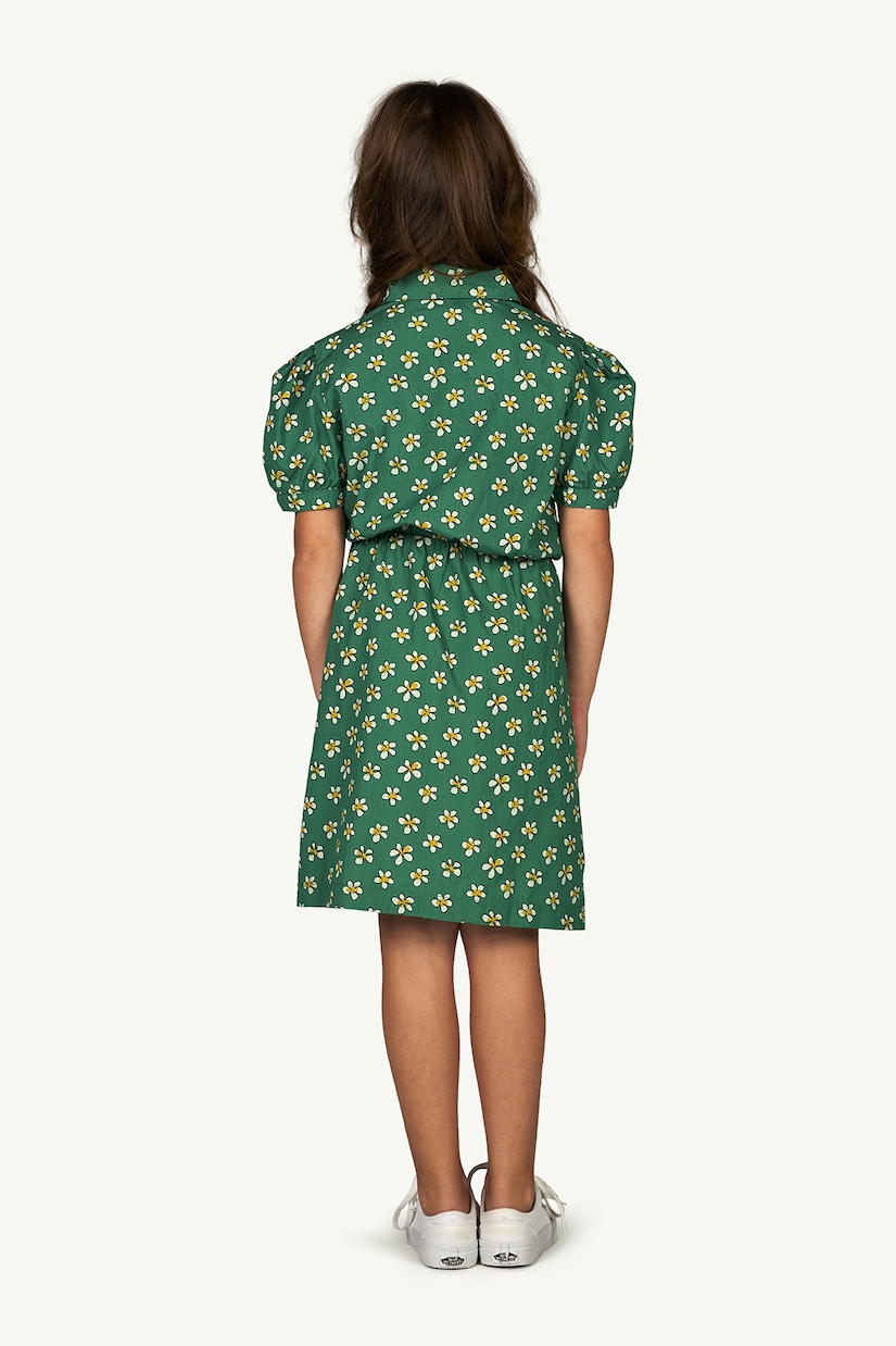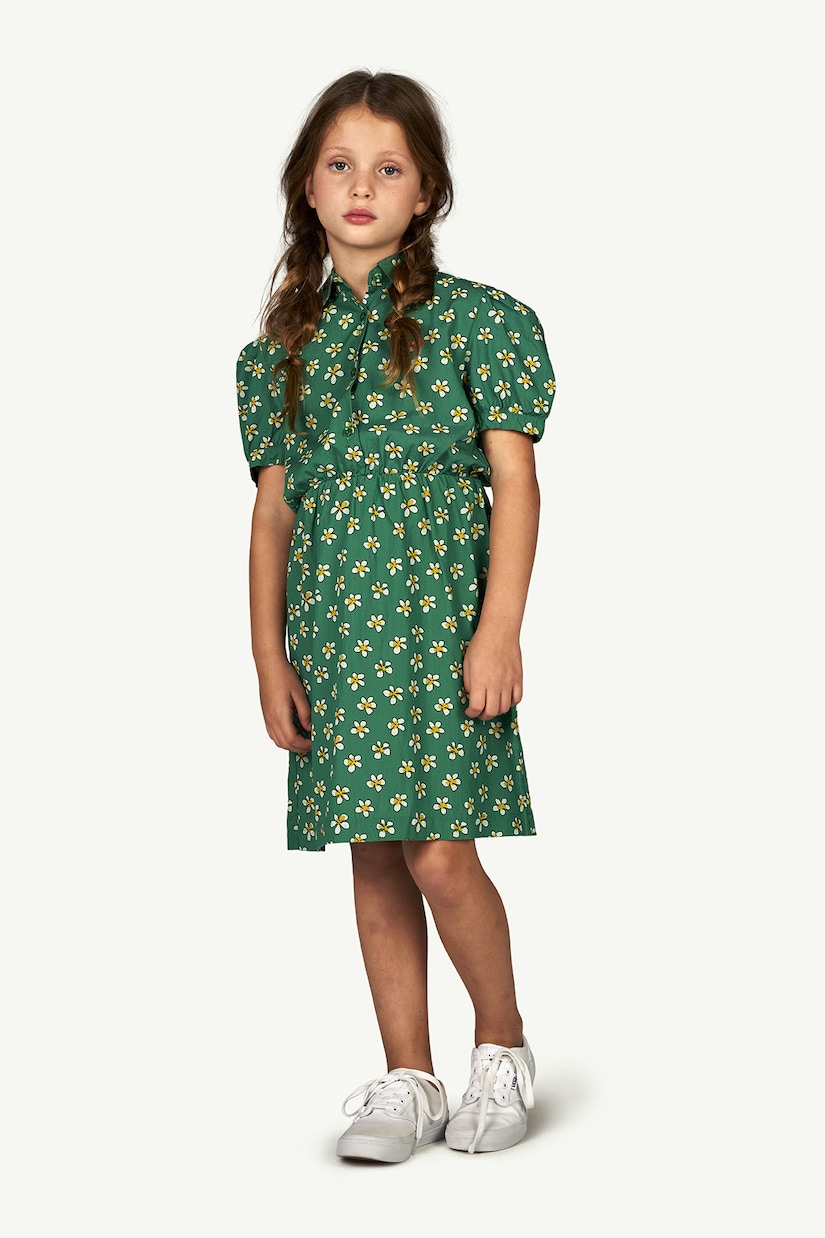 Платье Pigeon от The Animals Observatory идеально подходит для игр вашего малыша или школьных занятий. Элегантный фасон с веселым принтом в виде ромашек, воротником, эластичным поясом и небольшим фиолетовым логотипом.