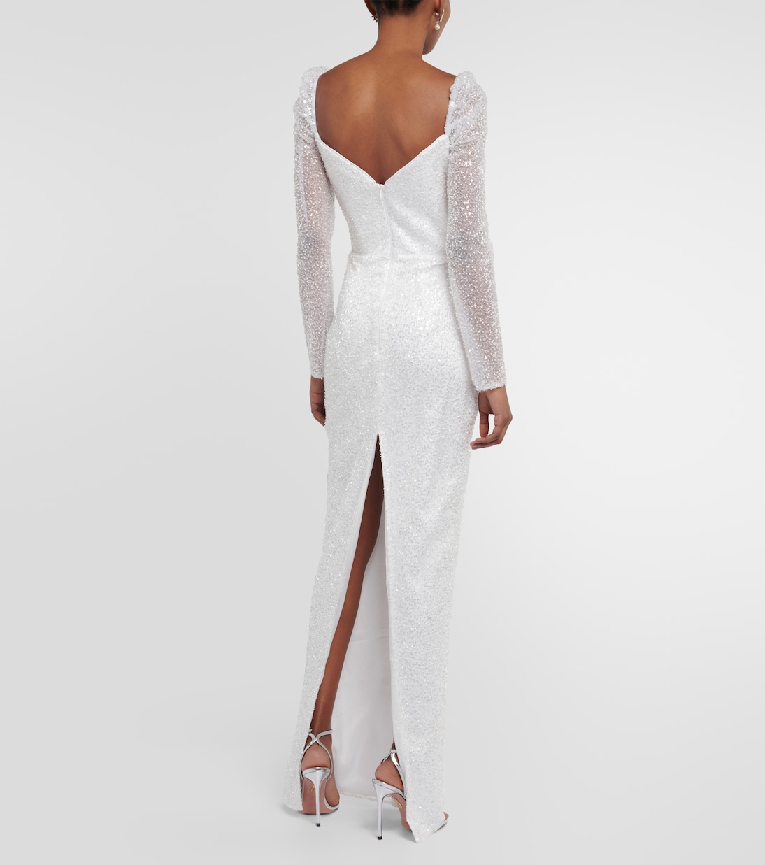 Платье Rossalind от Rasario, созданное для современной невесты, станет невероятно элегантным выбором. Платье выполнено из легкого трикотажа, украшенного сверкающими пайетками, и имеет скульптурный лиф с вырезом в форме сердечка.
