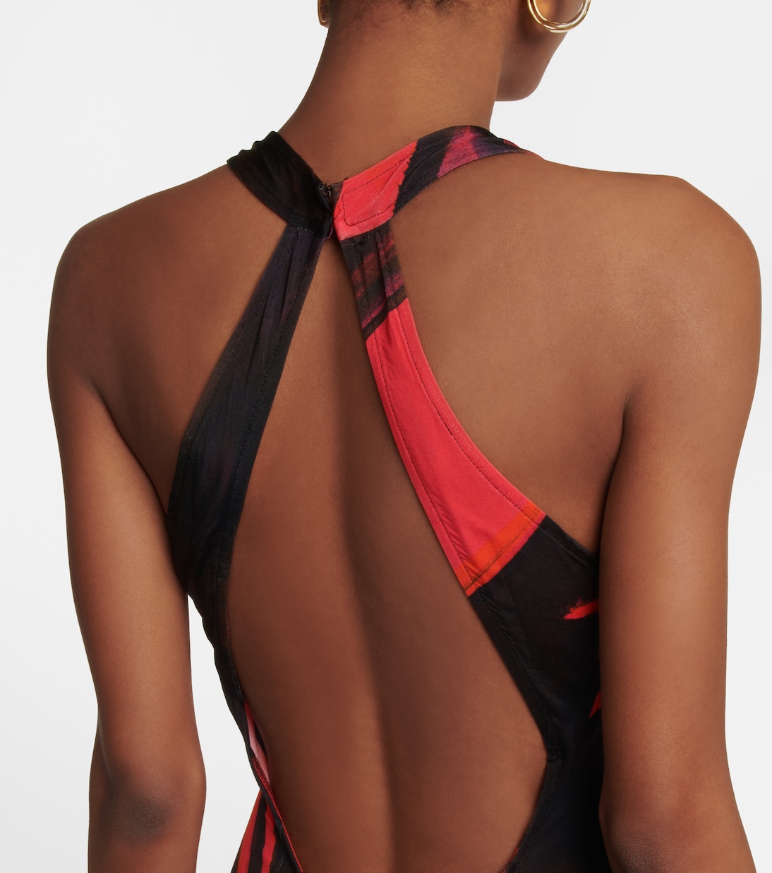 Платье макси High Sea от Louisa Ballou украшено фирменным принтом бренда Феерзевый гамбит. Эта модель с V-образным вырезом выполнена из эластичного трикотажа и имеет элегантный вырез на спине.