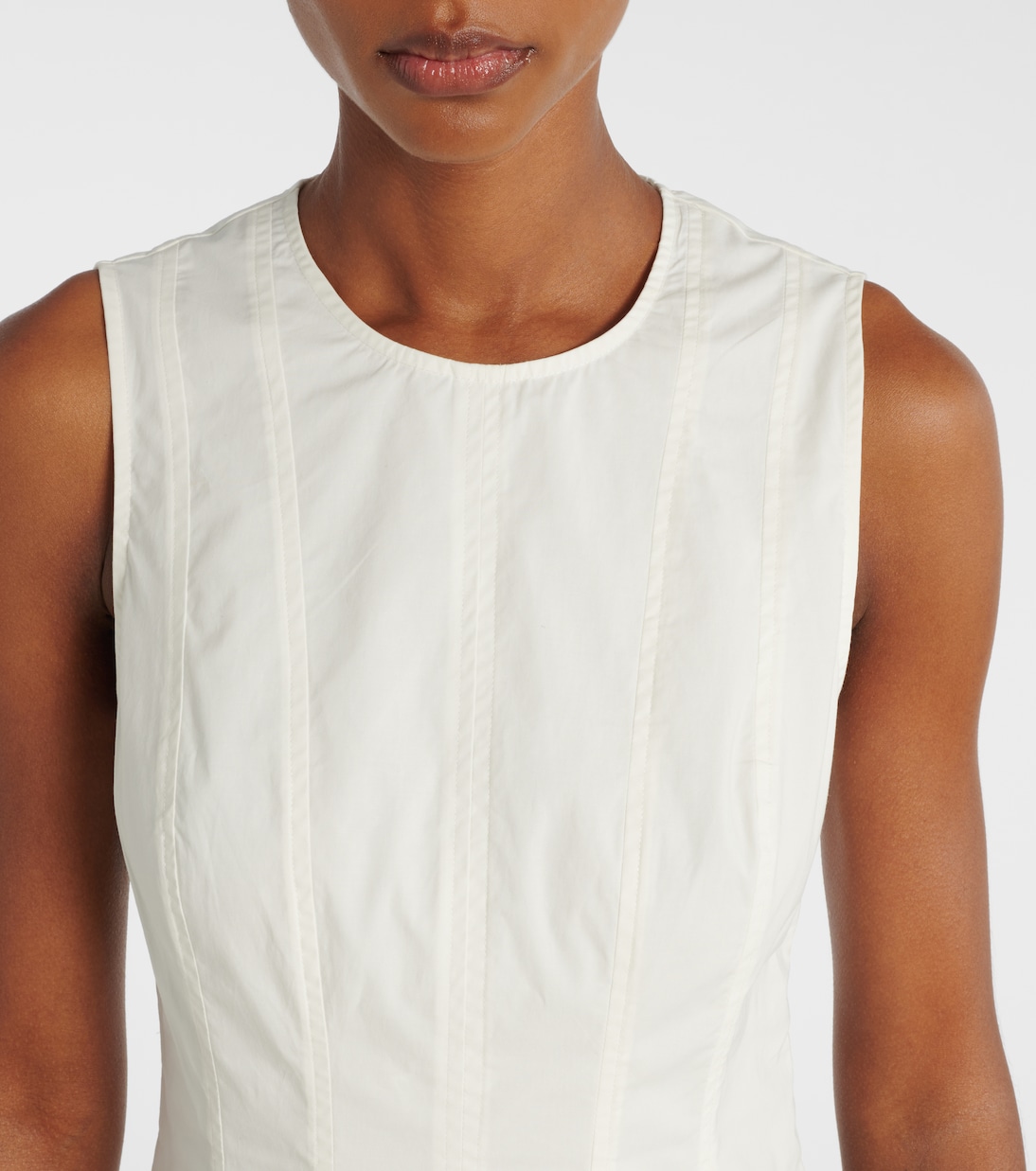 Платье миди Marley от White Label от Proenza Schouler выполнено из начесаного хлопкового поплина с плиссированной юбкой. Этот стиль характеризуется объемным подолом-пузырьком, который можно регулировать с помощью шнурка.
