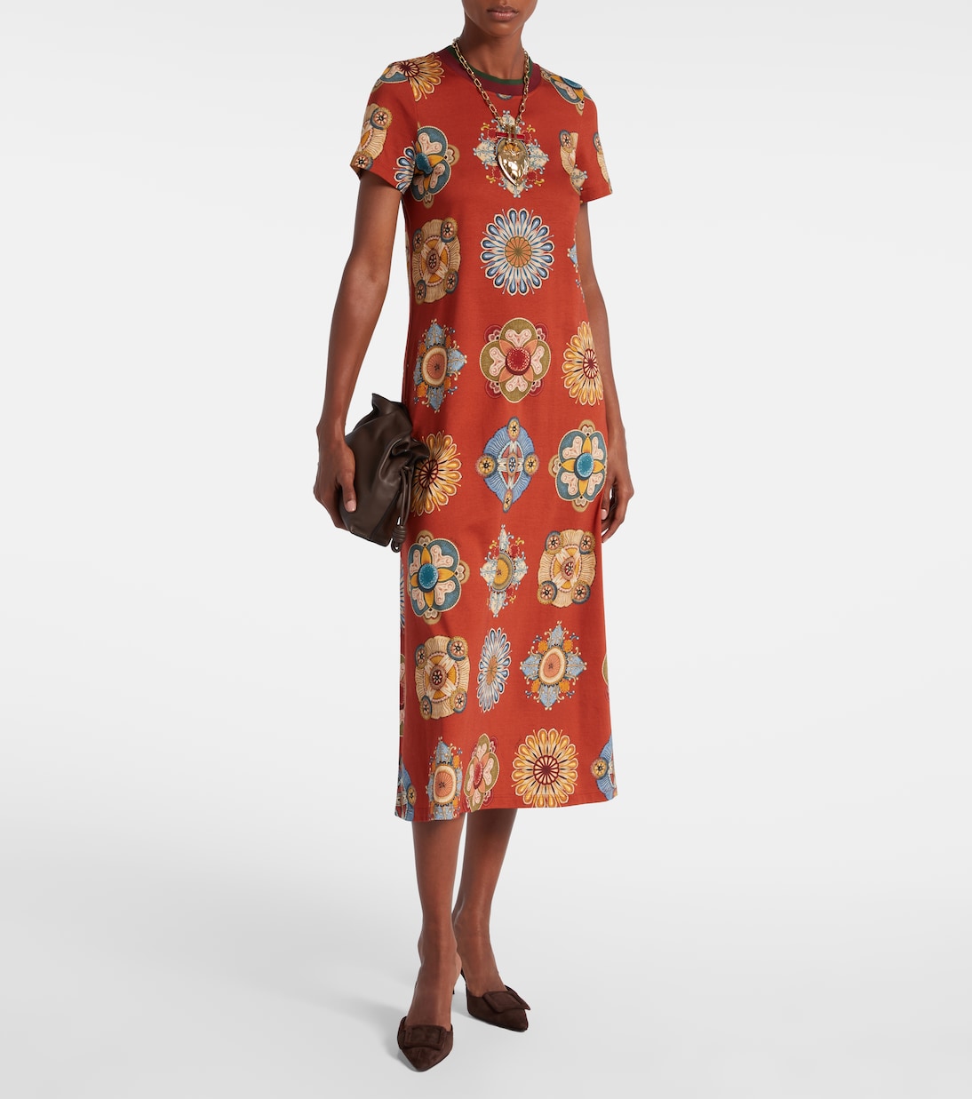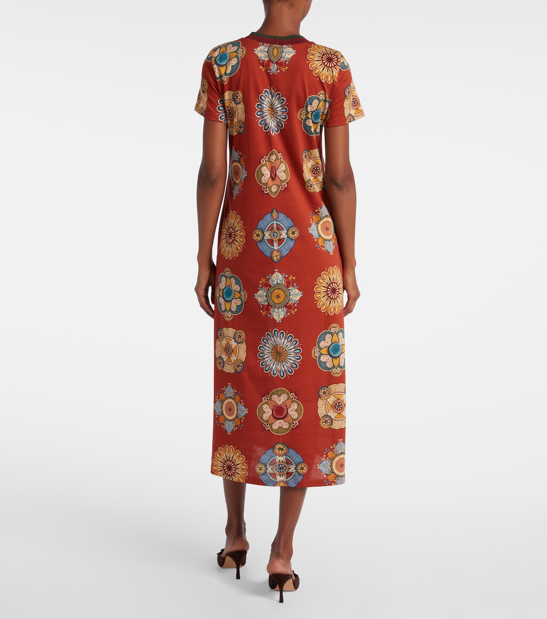 Платье миди Sporty Swing от La DoubleJ обещает непринужденный шик. Эта модель из хлопкового трикотажа отличается ярким принтом, ребристым воротником и свободным силуэтом, напоминающим футболку.
