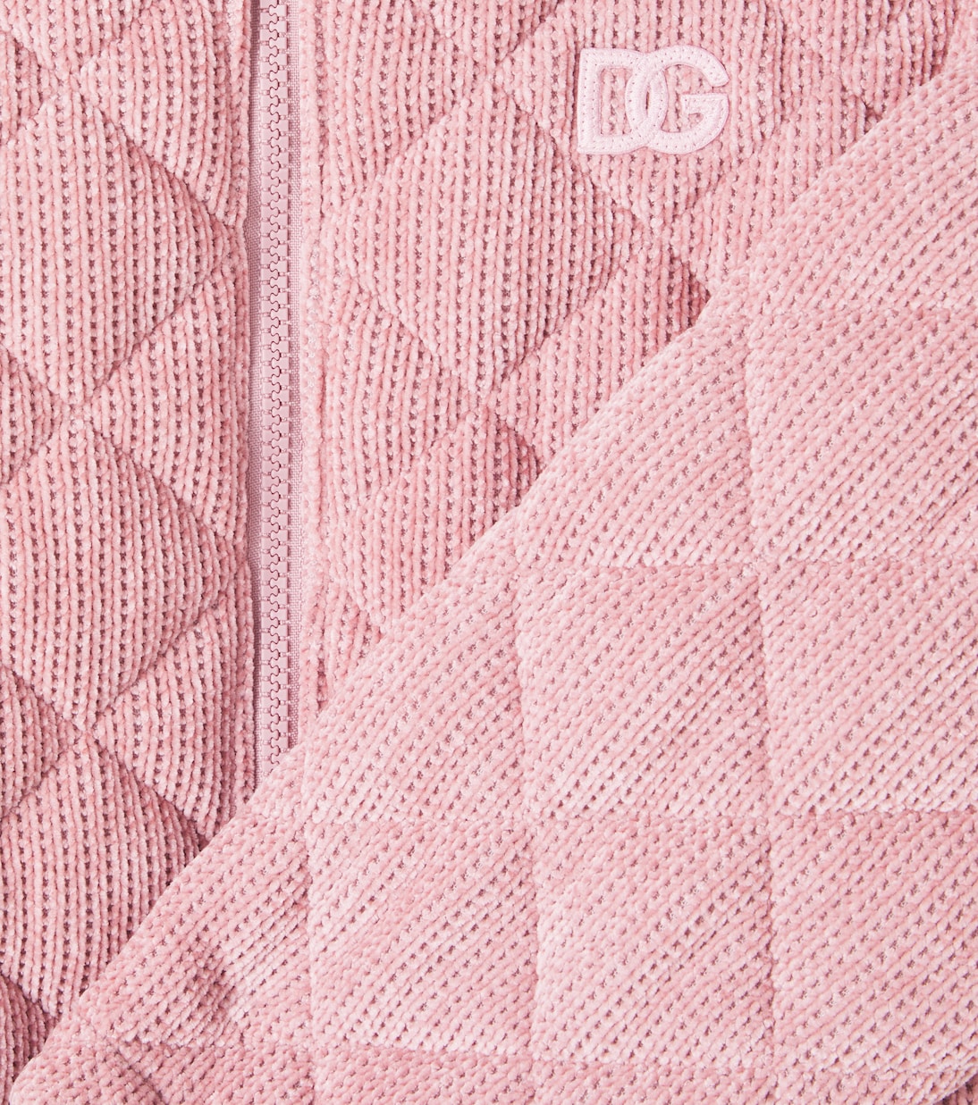 Позаботьтесь о своем малыше в уютной и стильной куртке Dolce&Gabbana Kids, которая идеально сочетает в себе комфорт и игривое очарование. Эта стеганая модель украшена изящным логотипом DG и практичной застежкой-молнией спереди.