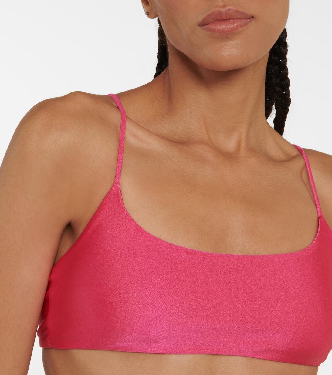 Познакомьтесь с эстетикой Jade Swim, воплощающей концепцию меньше значит больше, в моделях с минимальным закрытием, таких как бикини-топ Muse. Этот блестящий розовый купальник выполнен из ткани, устойчивой к воздействию хлора, масел и кремов. Сочетайте с подходящими низами.