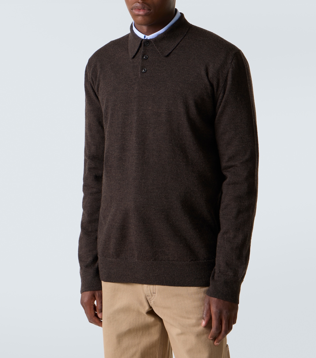 Поразив публику радикальными подиумами и невиданными ранее силуэтами в конце 80-х, Maison Margiela продолжает выступать за смелые эксперименты. Этот свитер-поло, изготовленный из шерсти, имеет ребристые манжеты.