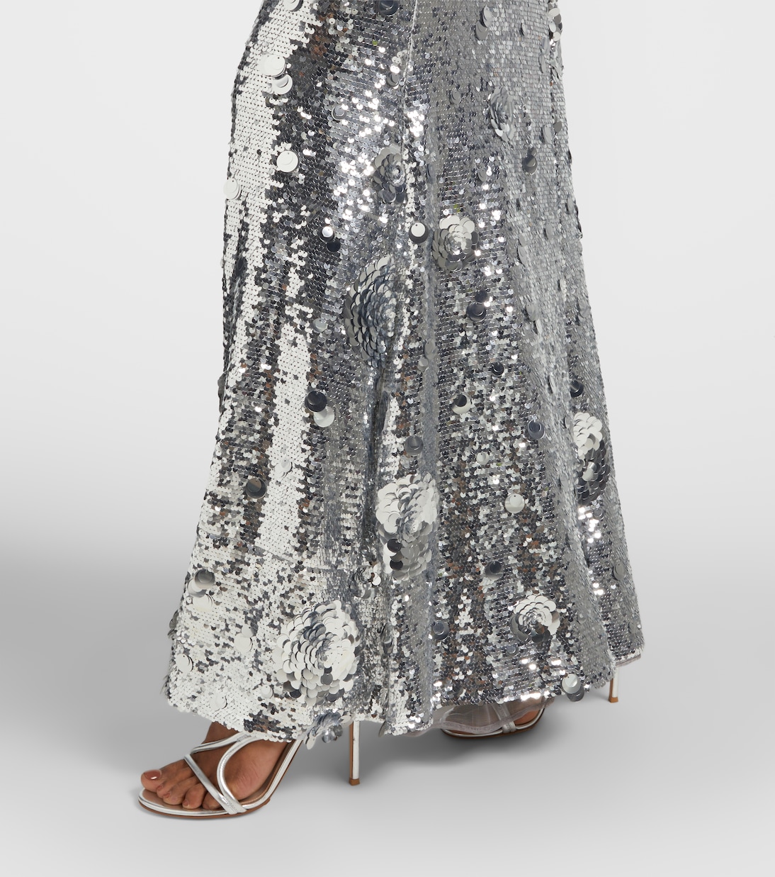 Поразите всех на своем следующем вечернем мероприятии в платье Claudie из коллекции The New Arrivals Ilkyaz Ozel. Этот мерцающий дизайн с открытой спиной и глубоким вырезом полностью покрыт мелкими серебряными пайетками, перемежающимися с более крупными, расположенными в цветочном узоре.