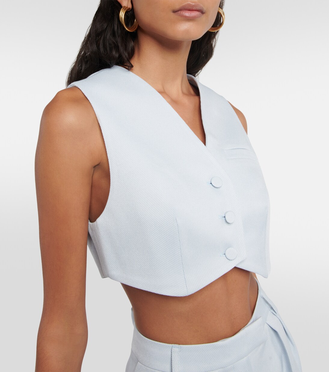 Преодолейте разрыв между дневным и вечерним гардеробом с помощью модели от Aya Muse, бренда, преданного принципам экологичной моды. Этот жилет сшит из легкой ткани и имеет укороченный силуэт.