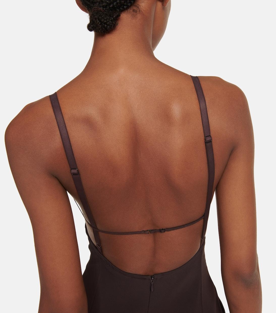 Привлекательные вырезы и замысловатые сети ремешков стали синонимами дизайна Нэнси Доджака. Это мини-платье характеризуется этой эстетикой и облегающим подолом, который лучше всего сочетается с прозрачными колготками бренда.