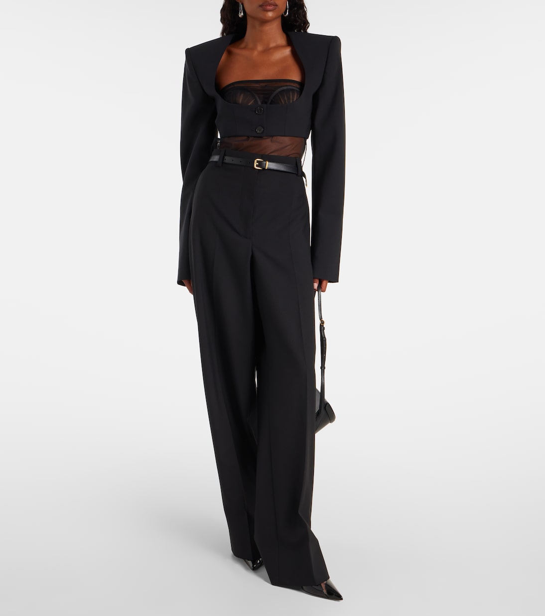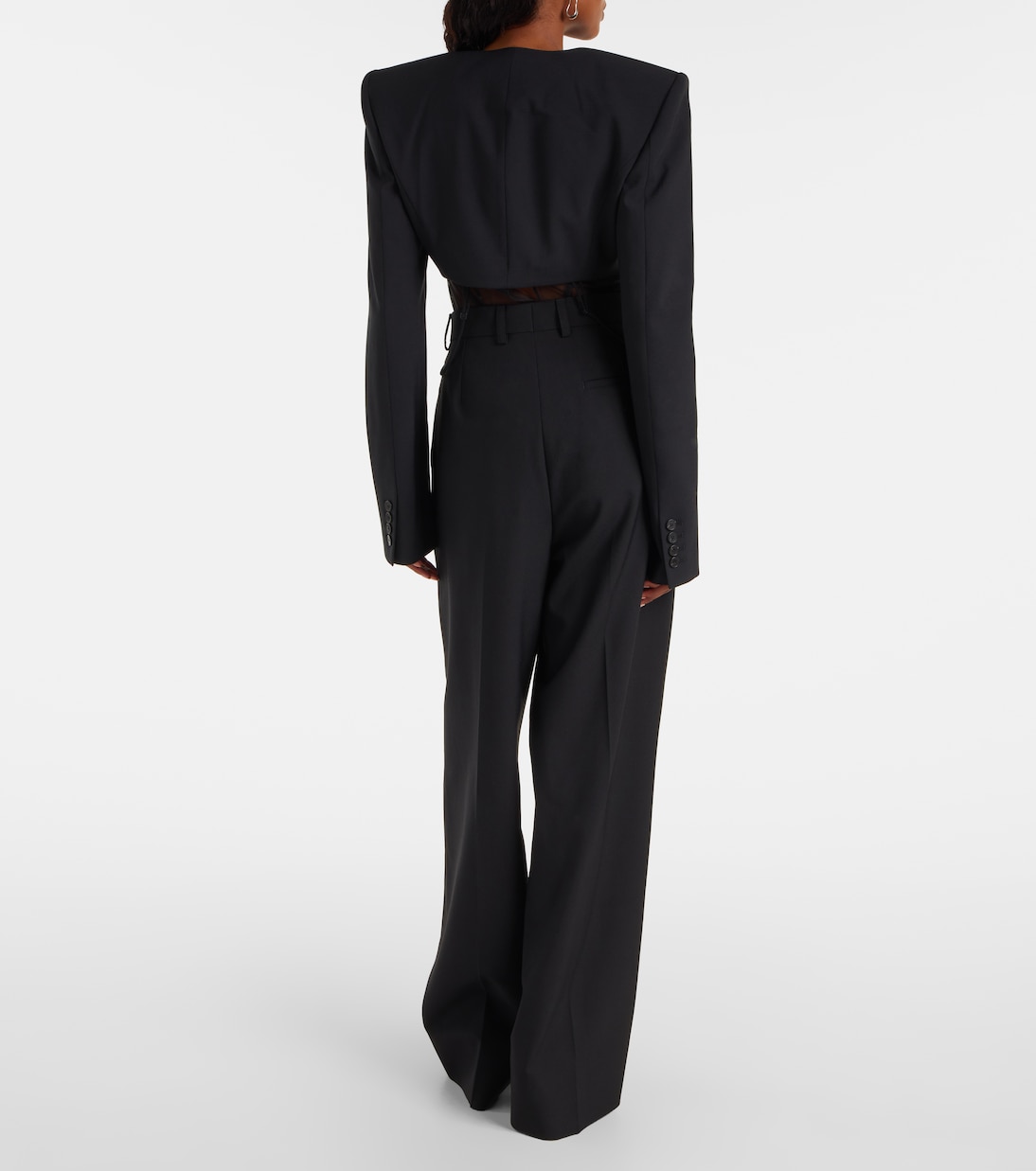 Привлекательные вырезы и замысловатые сети ремешков стали синонимами дизайна Нэнси Доджака. Этот топ в стиле блейзера изготовлен из крепа и имеет ультра-укороченный силуэт с застежкой на пуговицы и подплечниками.