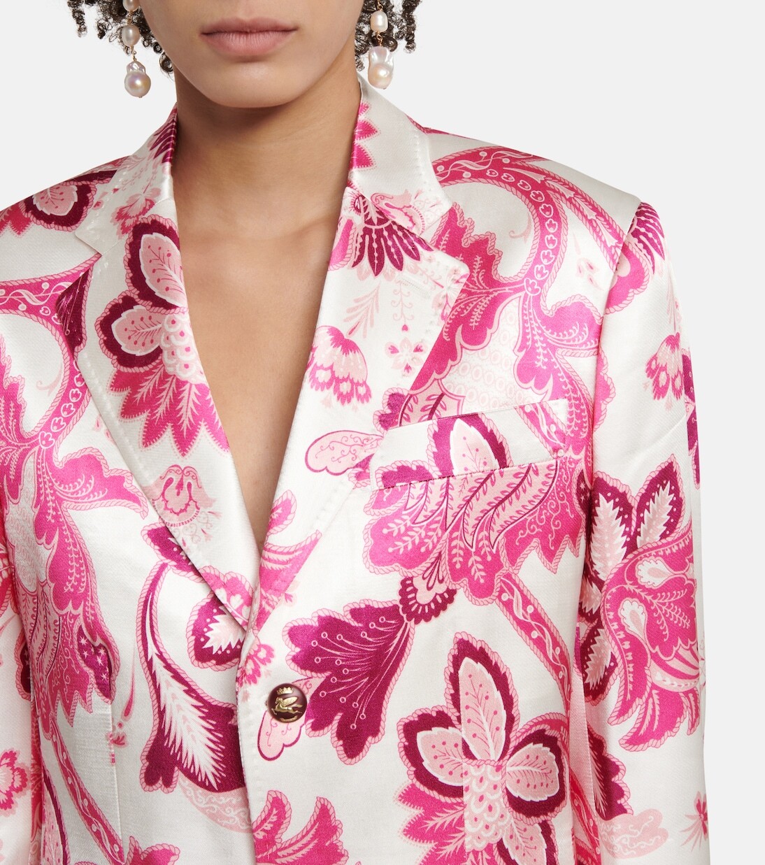 Принты пейсли настолько прочно ассоциируются с Etro, что стали визитной карточкой дома. Наглядный пример - этот яркий блейзер, аккуратно скроенный в однобортном силуэте с тиснеными пуговицами Pegaso.