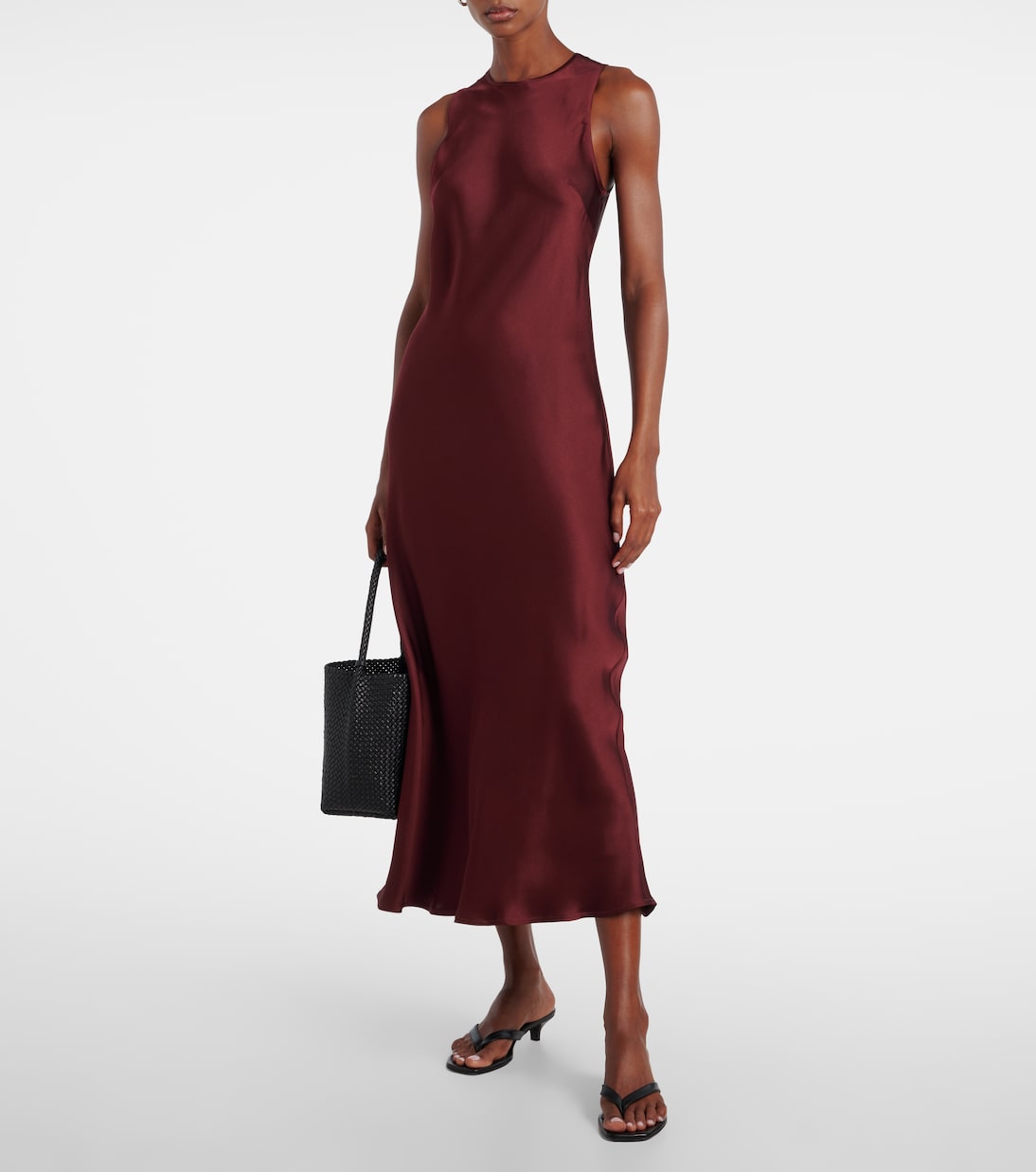 Проверенные временем силуэты Asceno, характеризующиеся непринужденной энергией, отражают наследие бренда в производстве одежды для сна. Платье макси Valencia выполнено из шелкового атласа бордового оттенка.