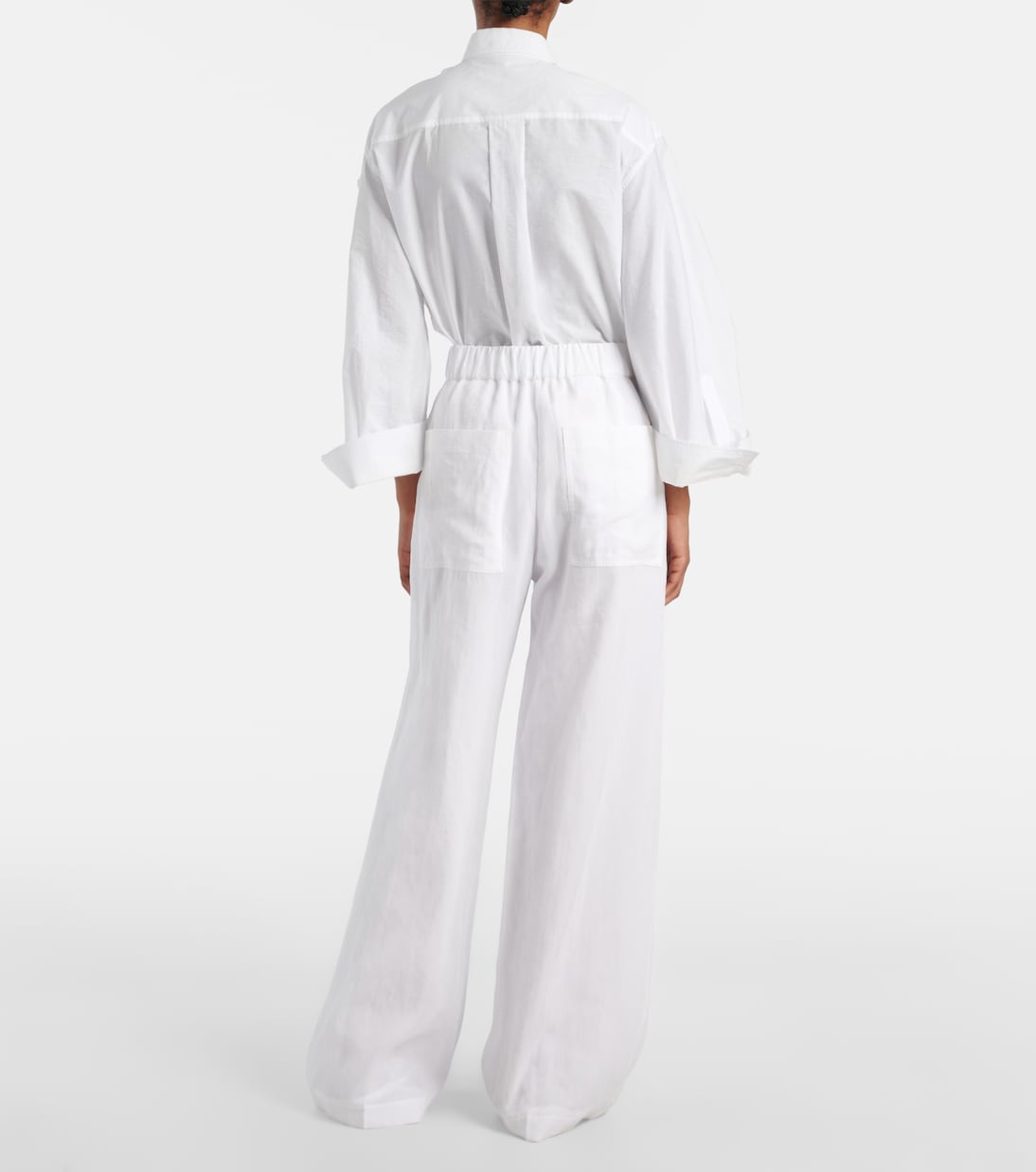 Проекты Брунелло Кучинелли создаются в Соломео, средневековой деревушке, искусство и традиции которой вплетены в каждую нить дома. Эти брюки широкого кроя, изготовленные из чистого хлопка, имеют боковые и задние карманы.