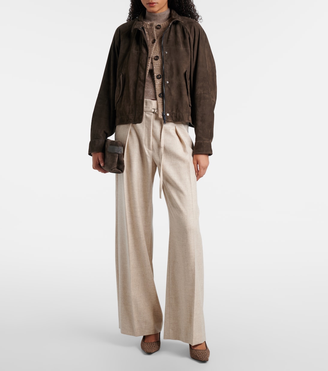 Проекты Брунелло Кучинелли создаются в Соломео, средневековой деревушке, искусство и традиции которой вплетены в каждую нить дома. Эти туфли-лодочки изготовлены из мягкой замши и отличаются элегантными силуэтами с острым носком и ослепительной отделкой по всей поверхности.