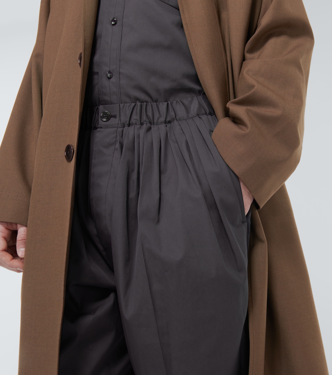 Разработанные вне зависимости от сезона и тенденций, модели Lemaire представляют собой идеальный баланс между качеством и функциональностью. Изготовленные из хлопка, эти брюки имеют эластичный пояс и свободные плиссированные штанины, которые слегка сужаются к манжетам.