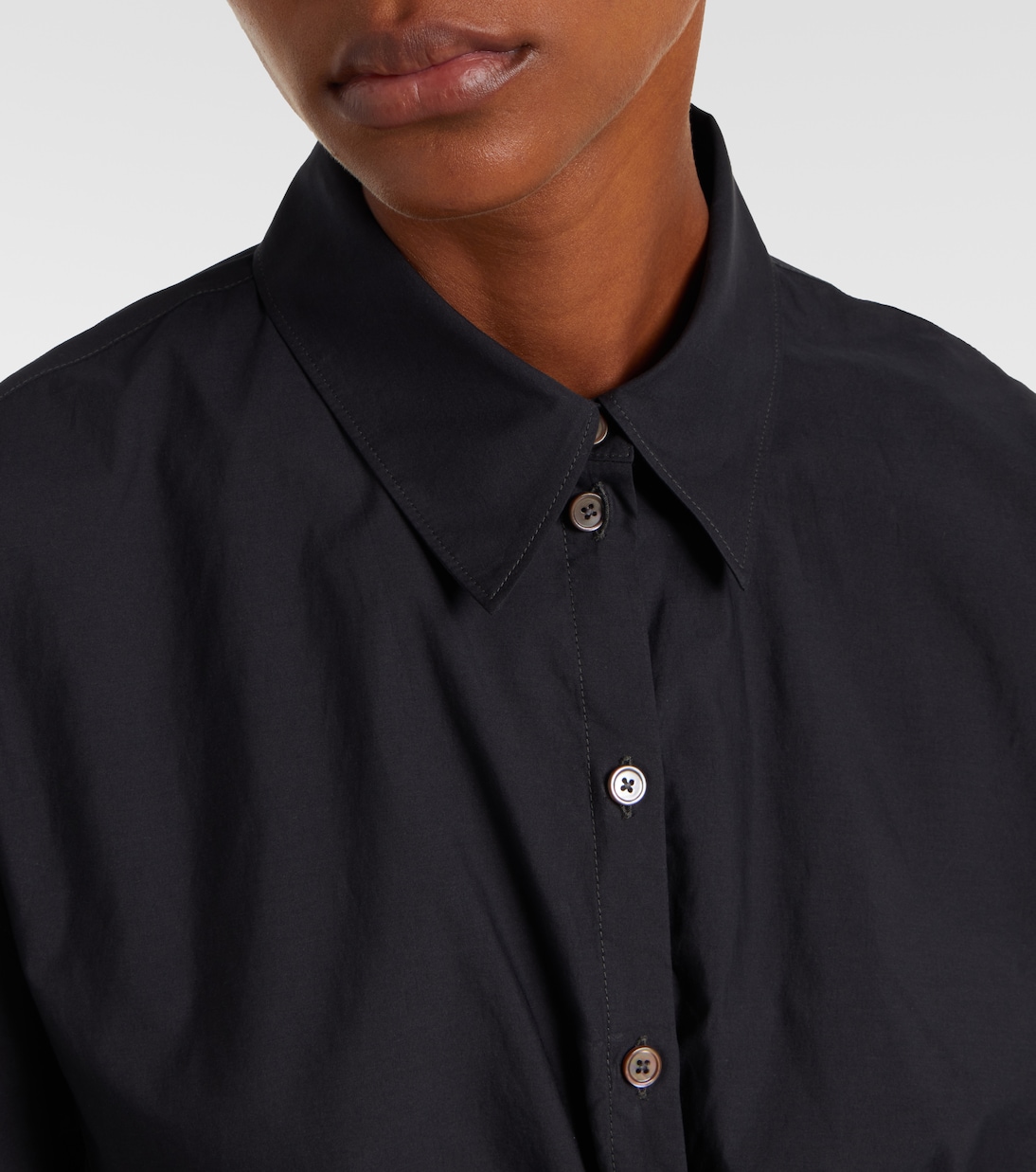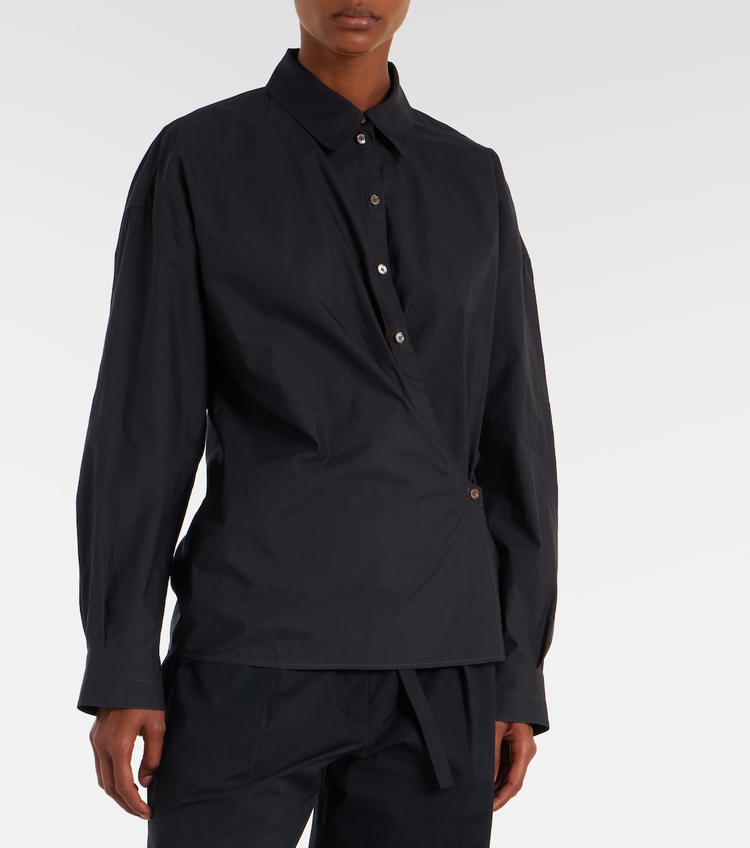 Разработанные вне зависимости от сезона и тенденций, модели Lemaire представляют собой идеальный баланс между качеством и функциональностью. Эта рубашка с закрученным воротом, регулируемая по талии, изготовлена из хлопка и шелка, имеет спущенные плечи и застежку на пуговицы.