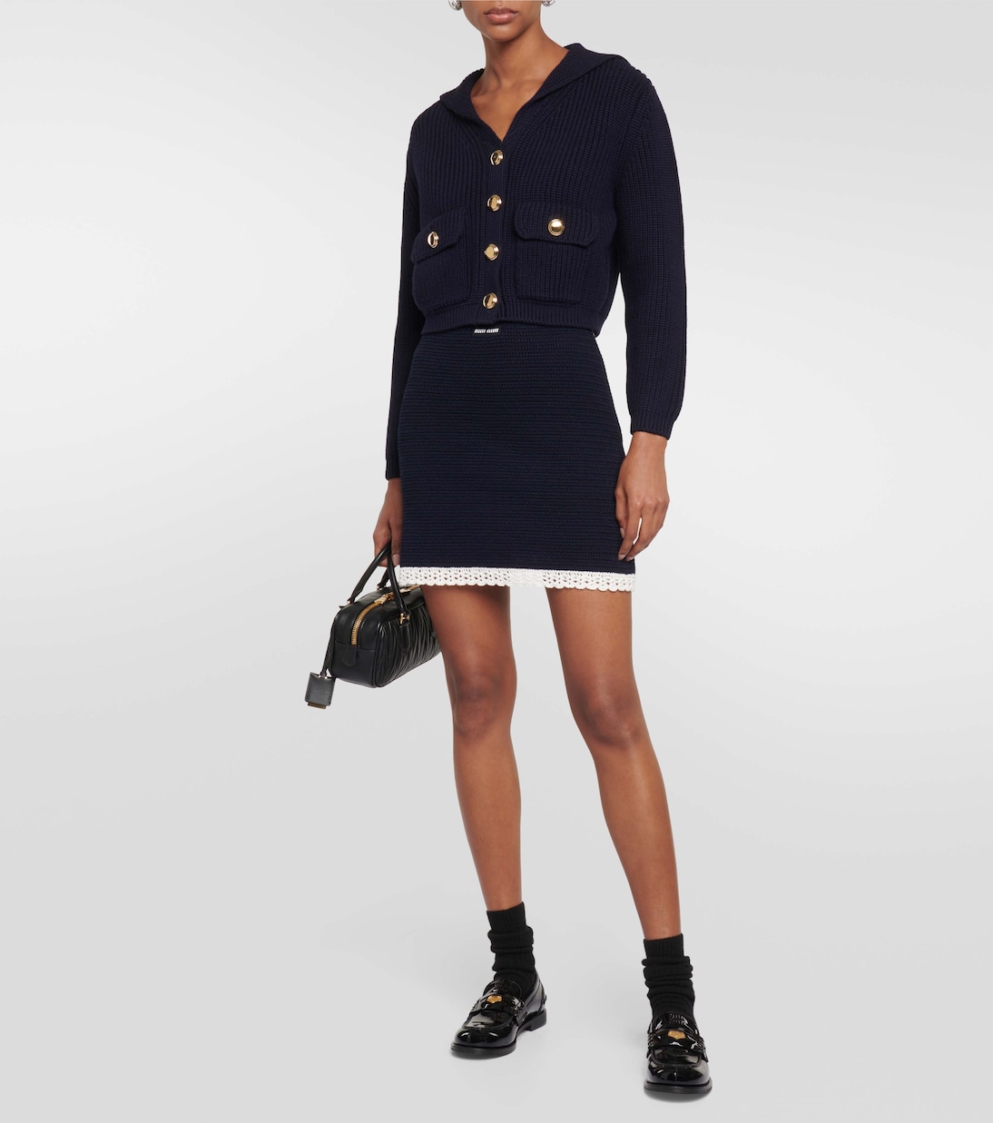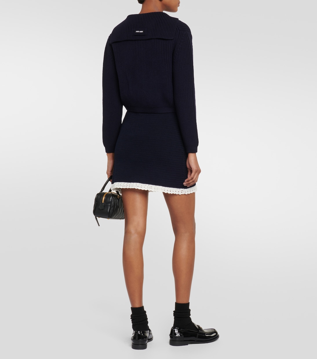 Раскованность, беззаботность и нарочито дерзкий стиль - вот отличительные черты Miu Miu от Миуччи Прады. Эта мини-юбка связана крючком из эластичного материала и дополнена контрастным белым подолом.