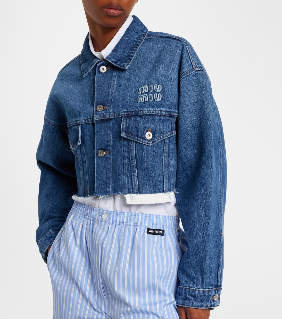 Раскованный, беззаботный и нарочито провокационный - вот отличительные черты Miu Miu от Миуччи Прады. Изготовленная в Италии из чистого хлопка, эта джинсовая куртка имеет укороченный силуэт с необработанным подолом и вышитым логотипом на груди.